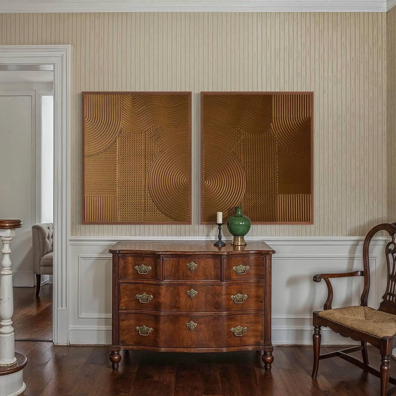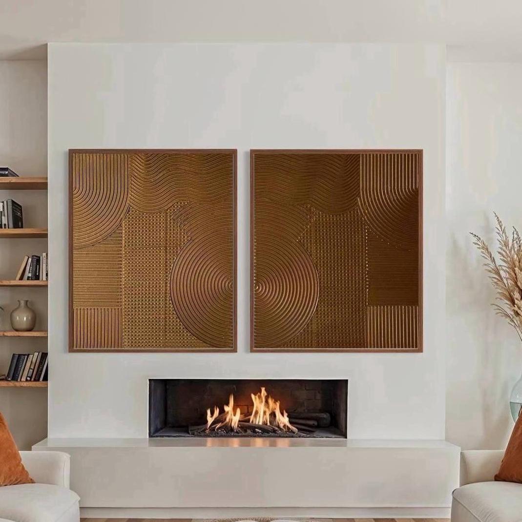 Elevate your interior with this stunning set of 2 textured golden bronze wall art panels, handcrafted to bring depth, luxury, and modern sophistication into your home. These large abstract paintings feature intricate geometric patterns, raised texture, and rich metallic gold tones that shift beautifully in the light. Perfect for anyone who loves modern decor, contemporary wall art, and luxury home styling, this diptych instantly transforms any room into a refined and elegant space.