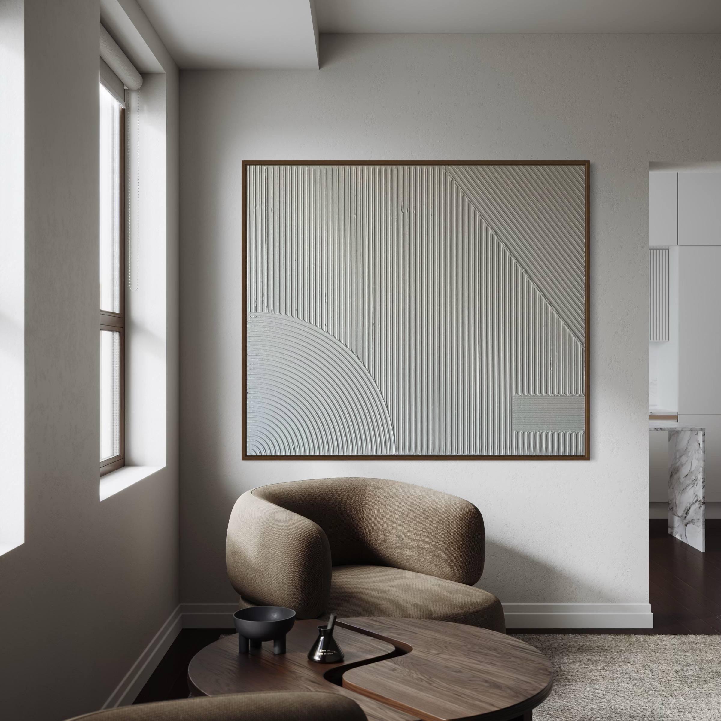 Its soft neutral palette makes it incredibly versatile — blending effortlessly into modern, minimalist, Japandi, wabi-sabi, Scandinavian, and contemporary interiors. Light interacts beautifully with the textured surface, changing the artwork’s character throughout the day.