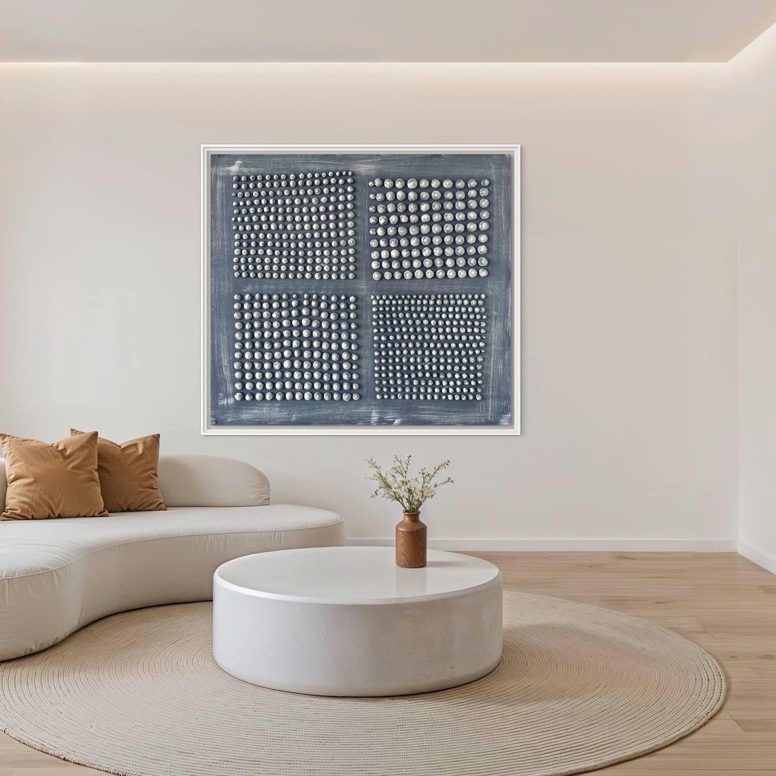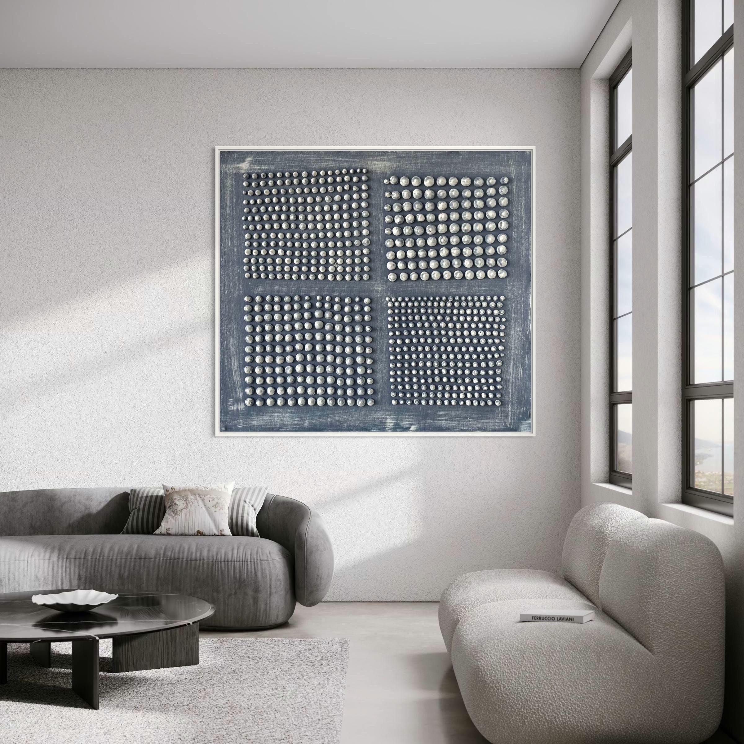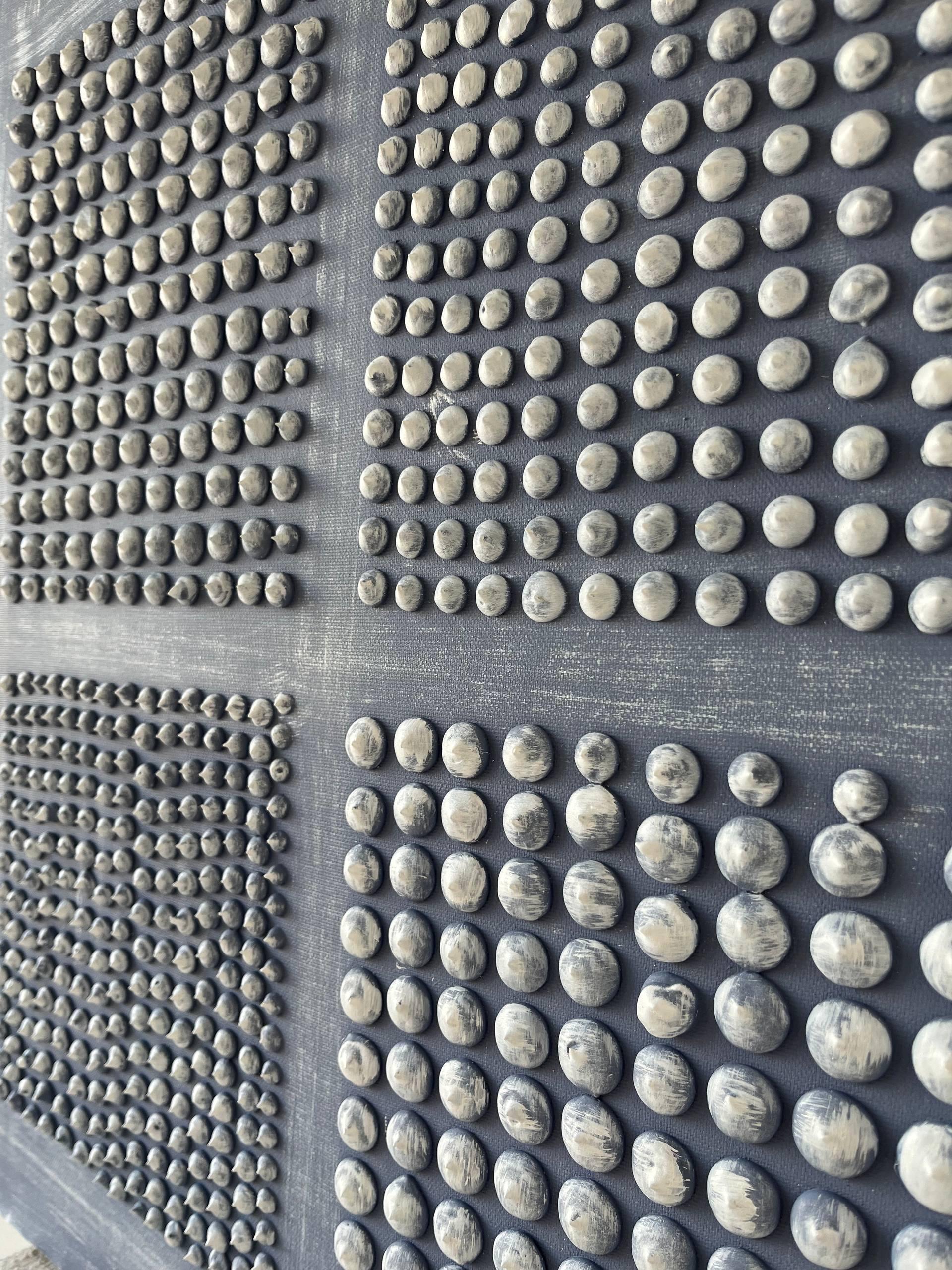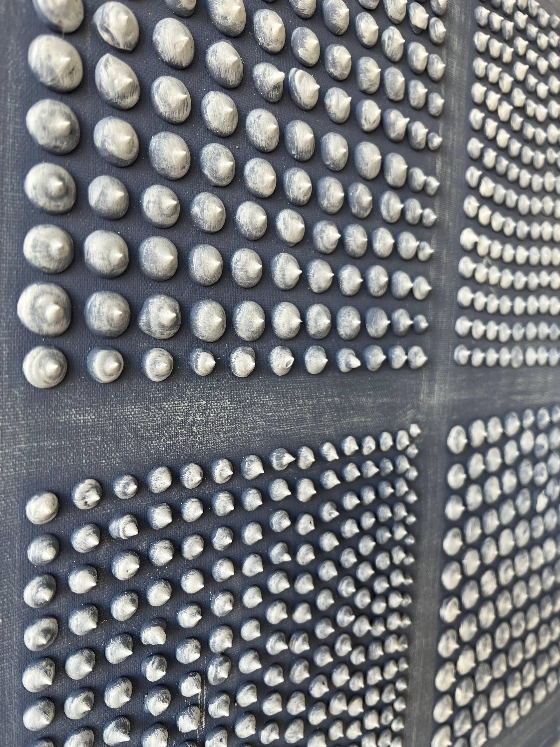 The surface is created with raised 3D dot texture and geometry relief, giving the artwork depth, movement, and a refined modern character.