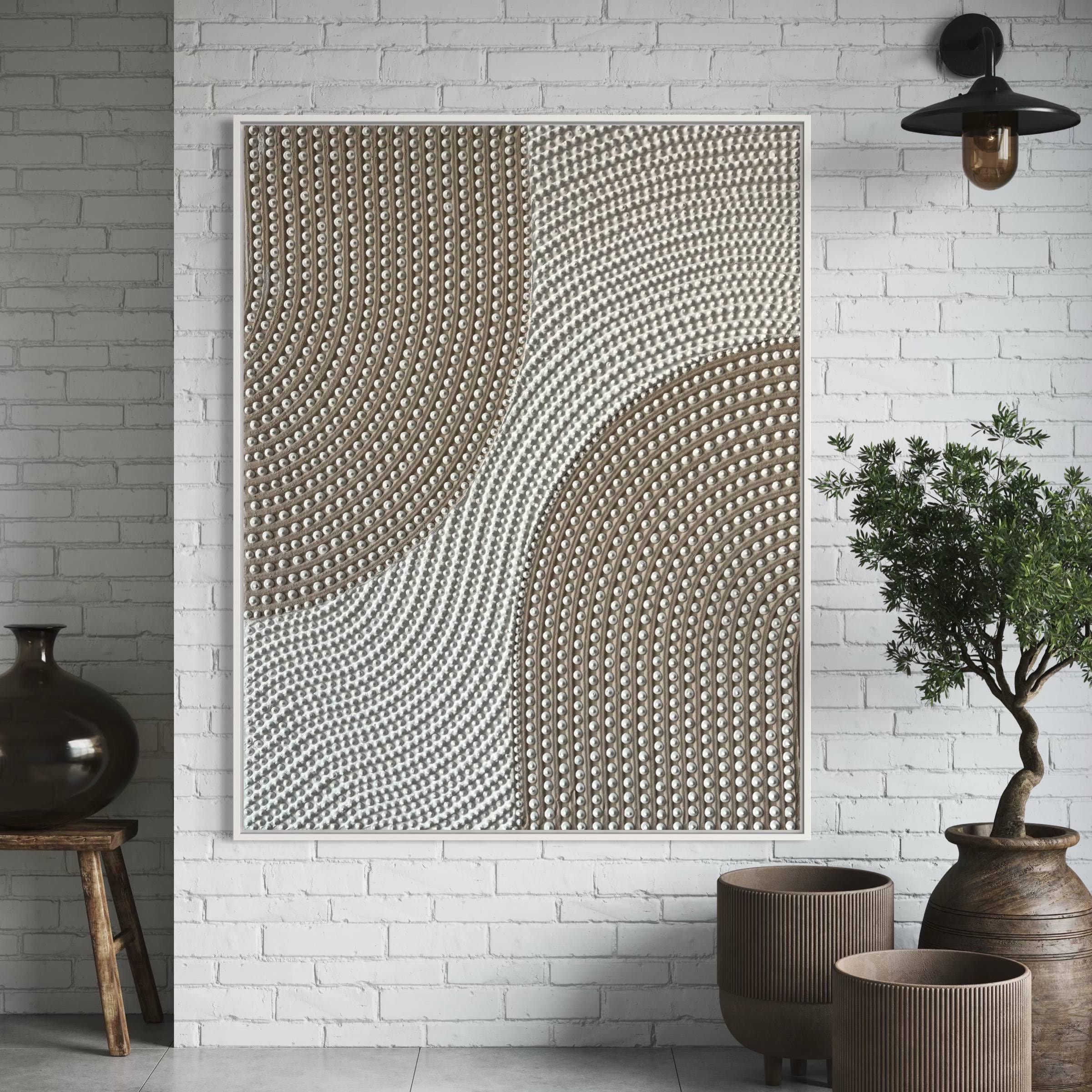 Modern neutral artwork with flowing geometric relief and calming organic movement.