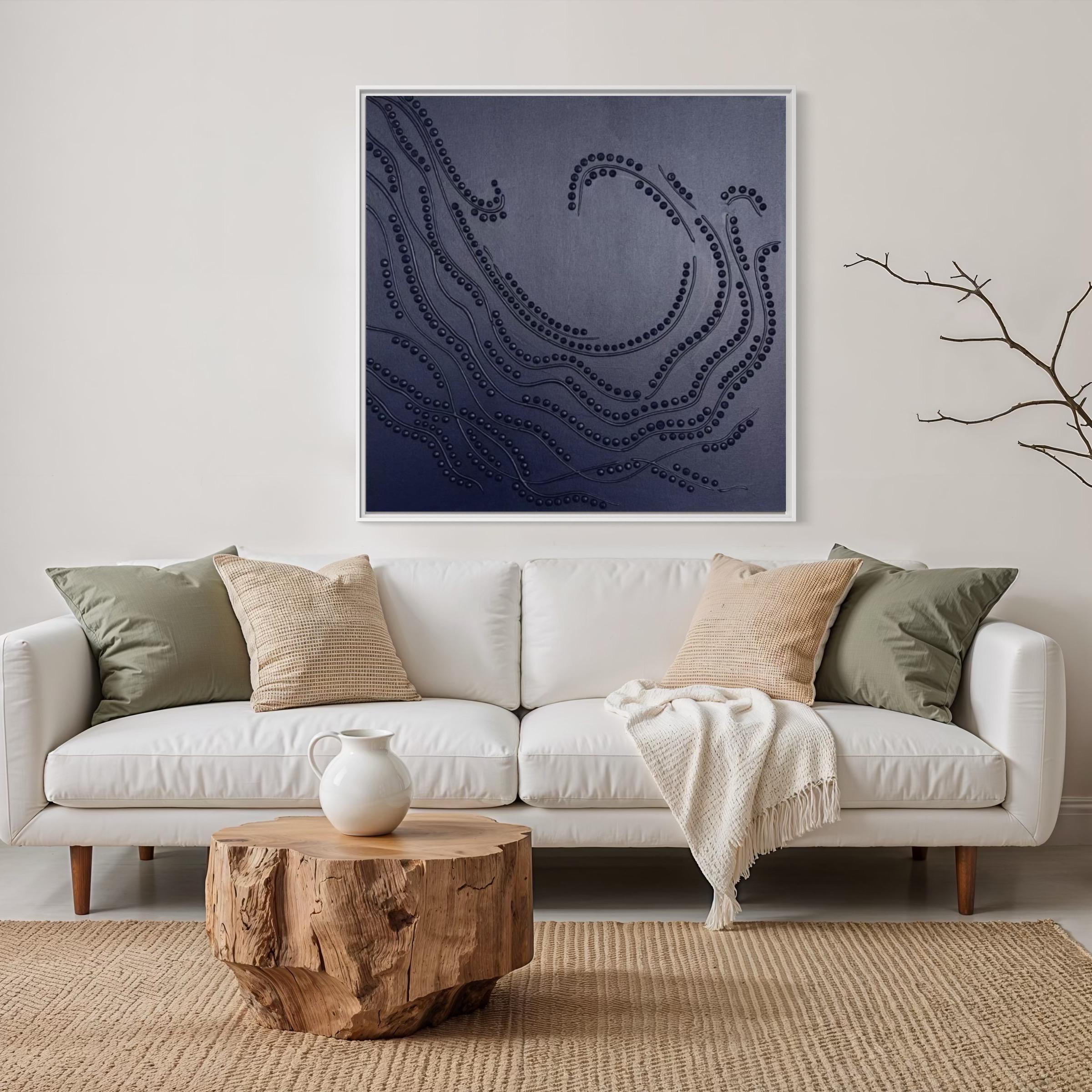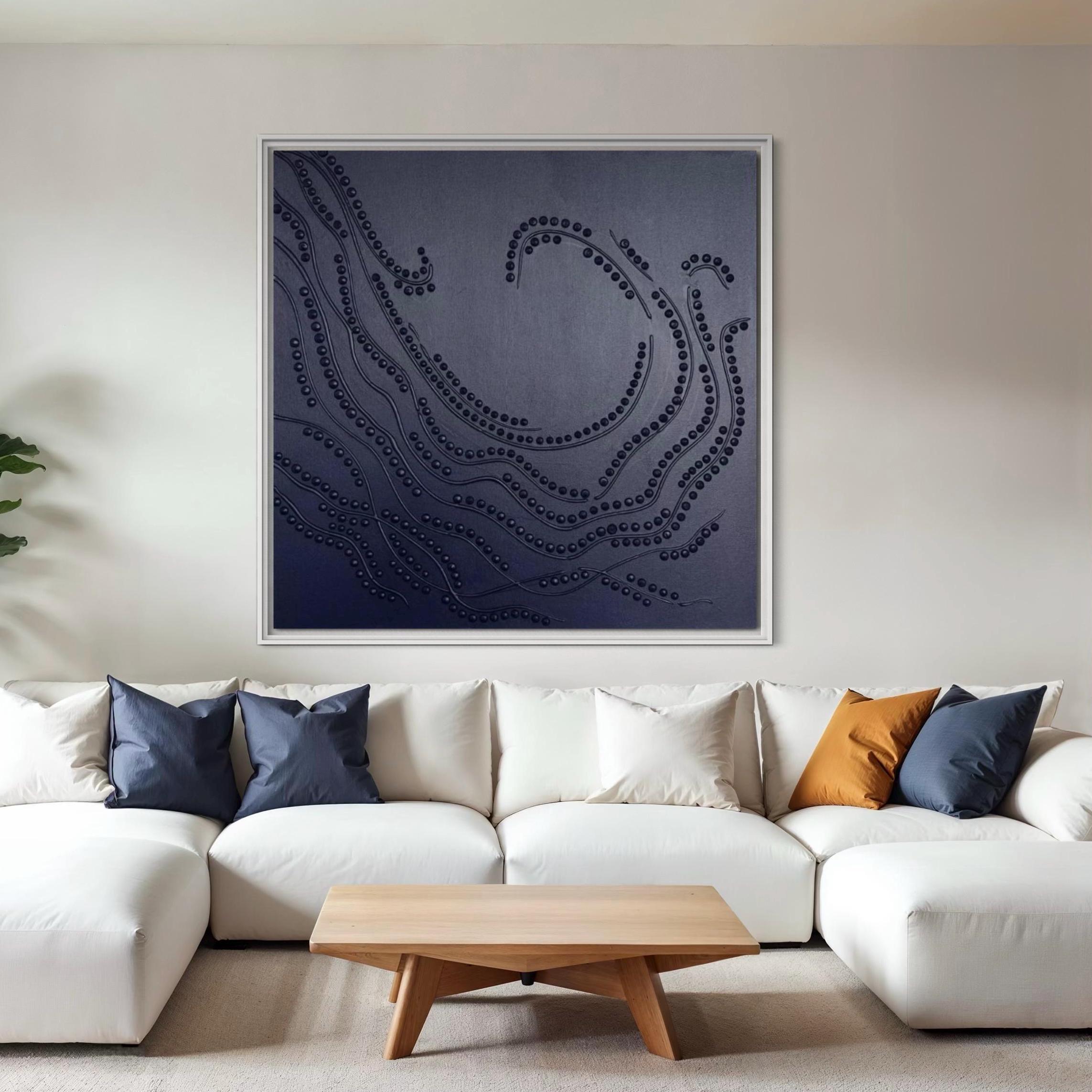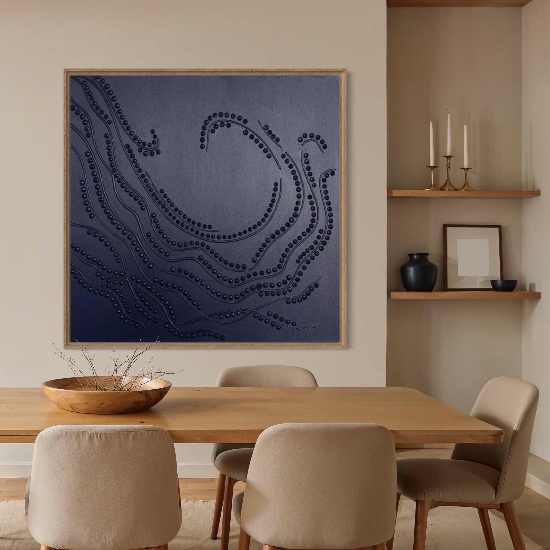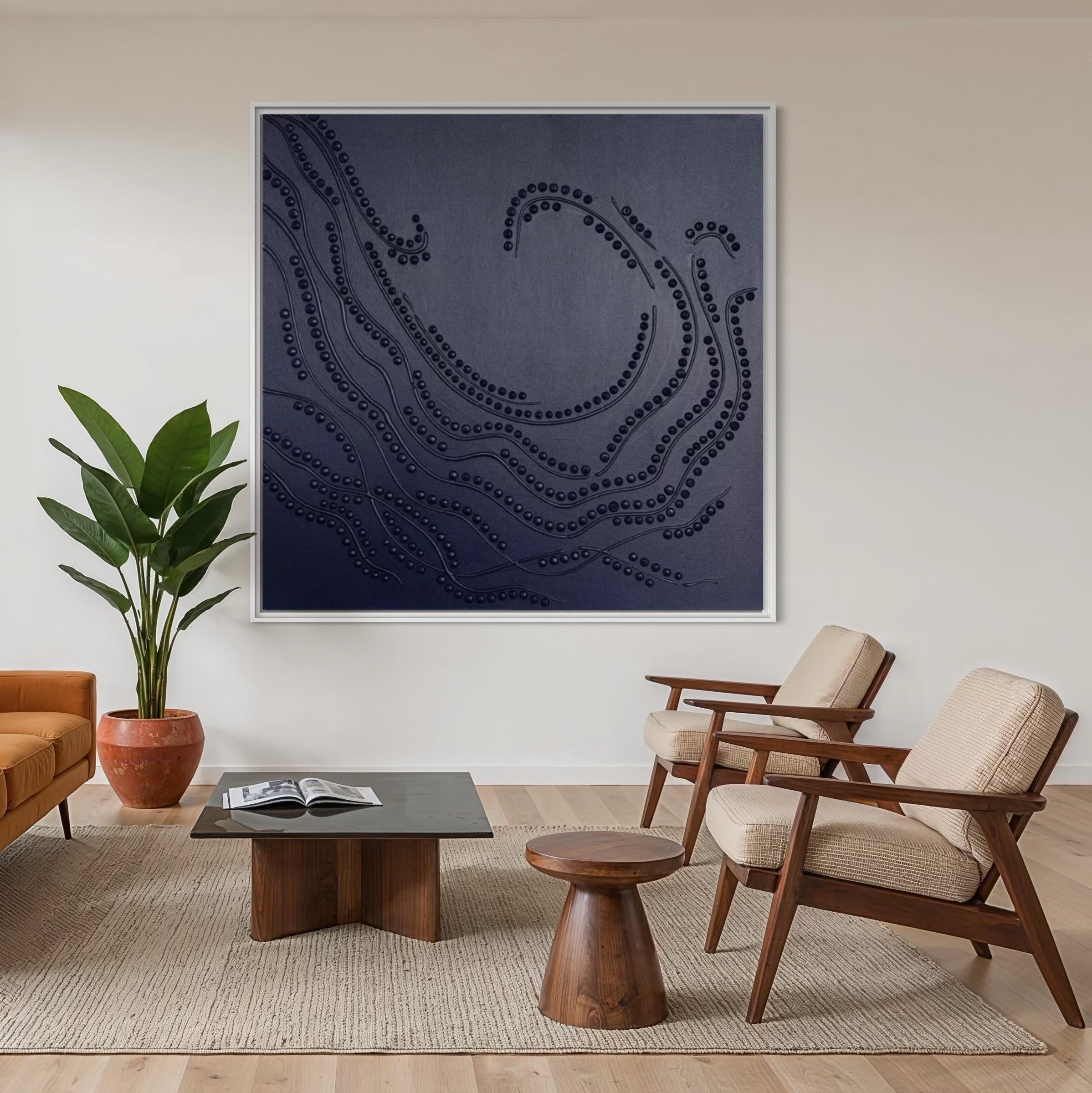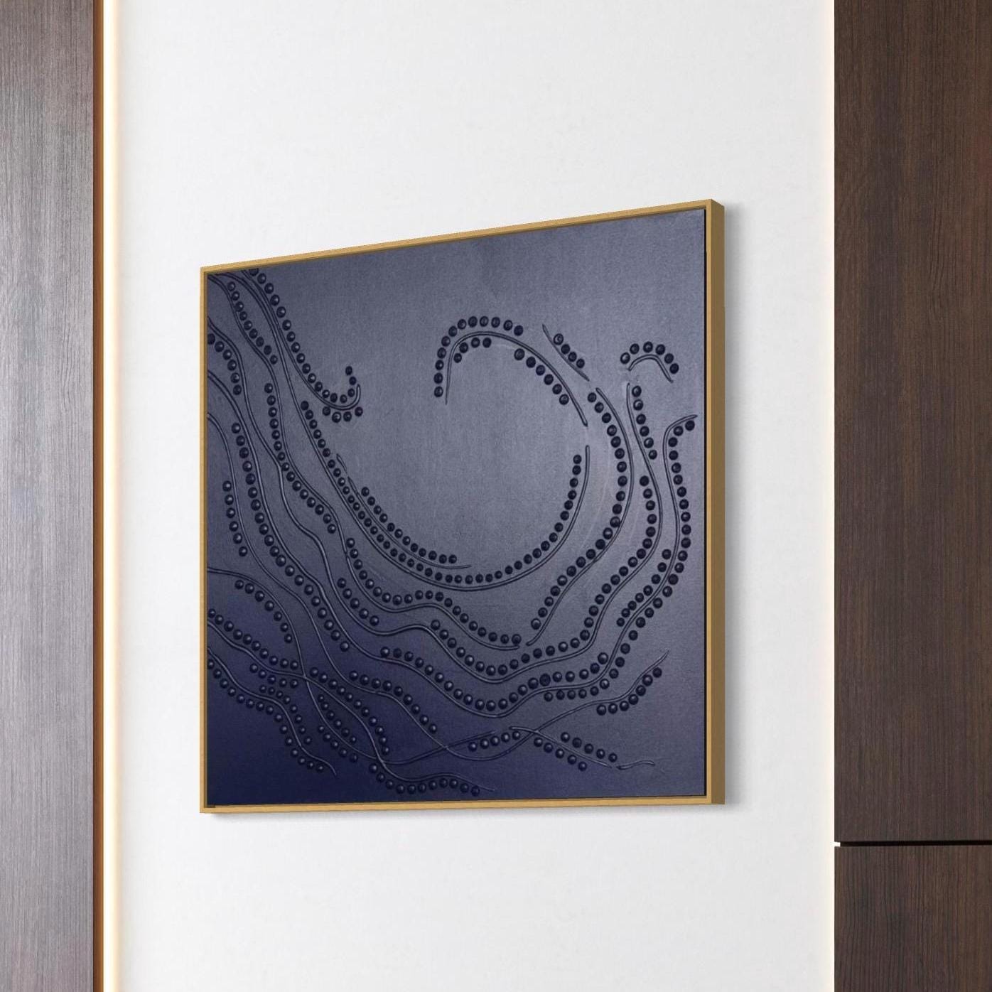 Handmade large navy blue textured abstract wall art with 3D dot texture. Perfect neutral modern decor for living rooms, bedrooms, and interiors.