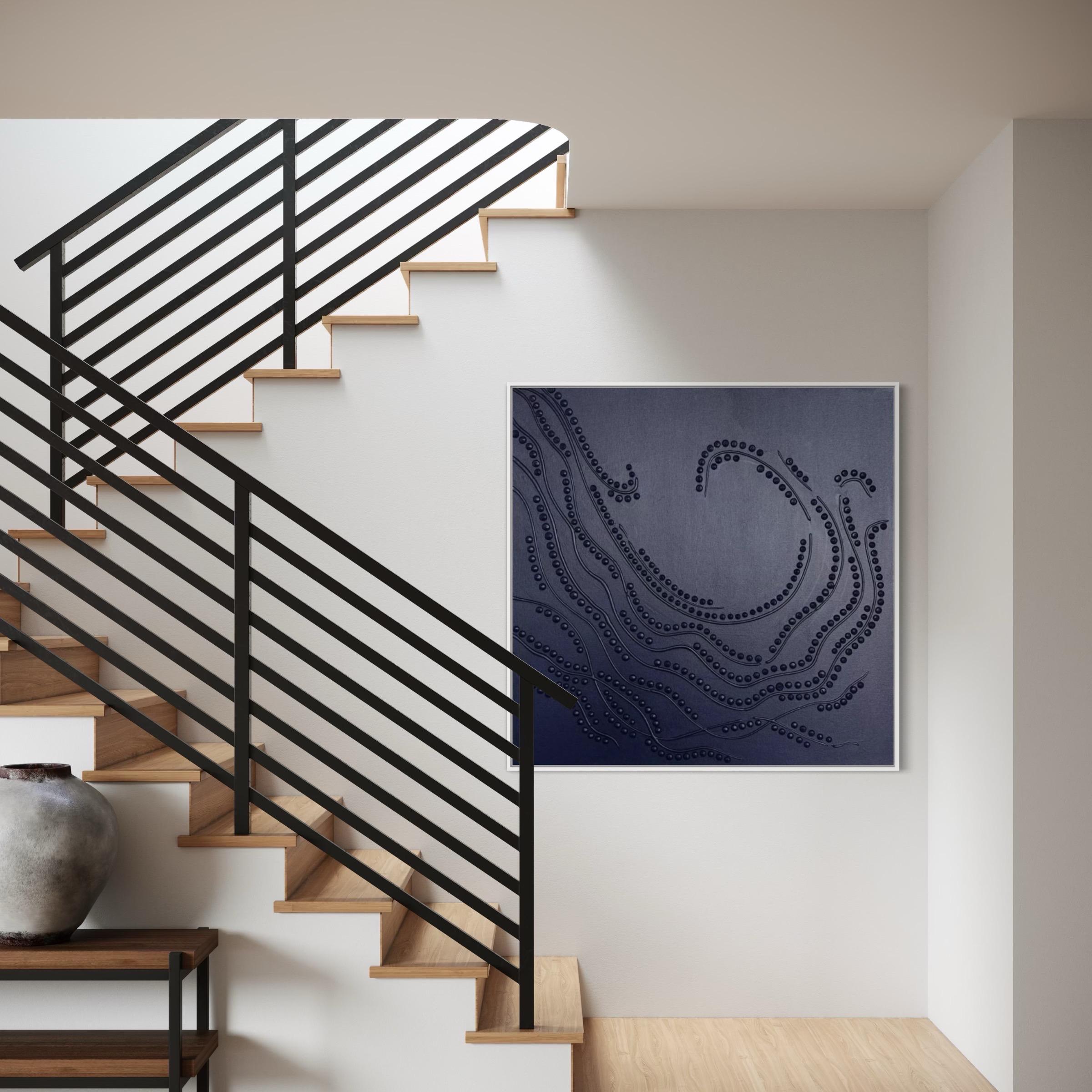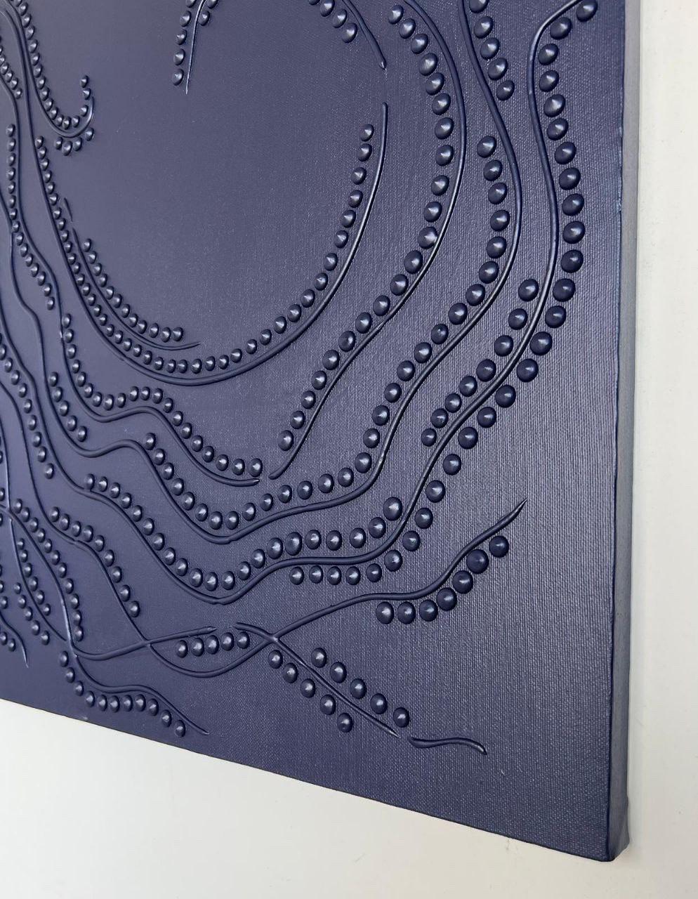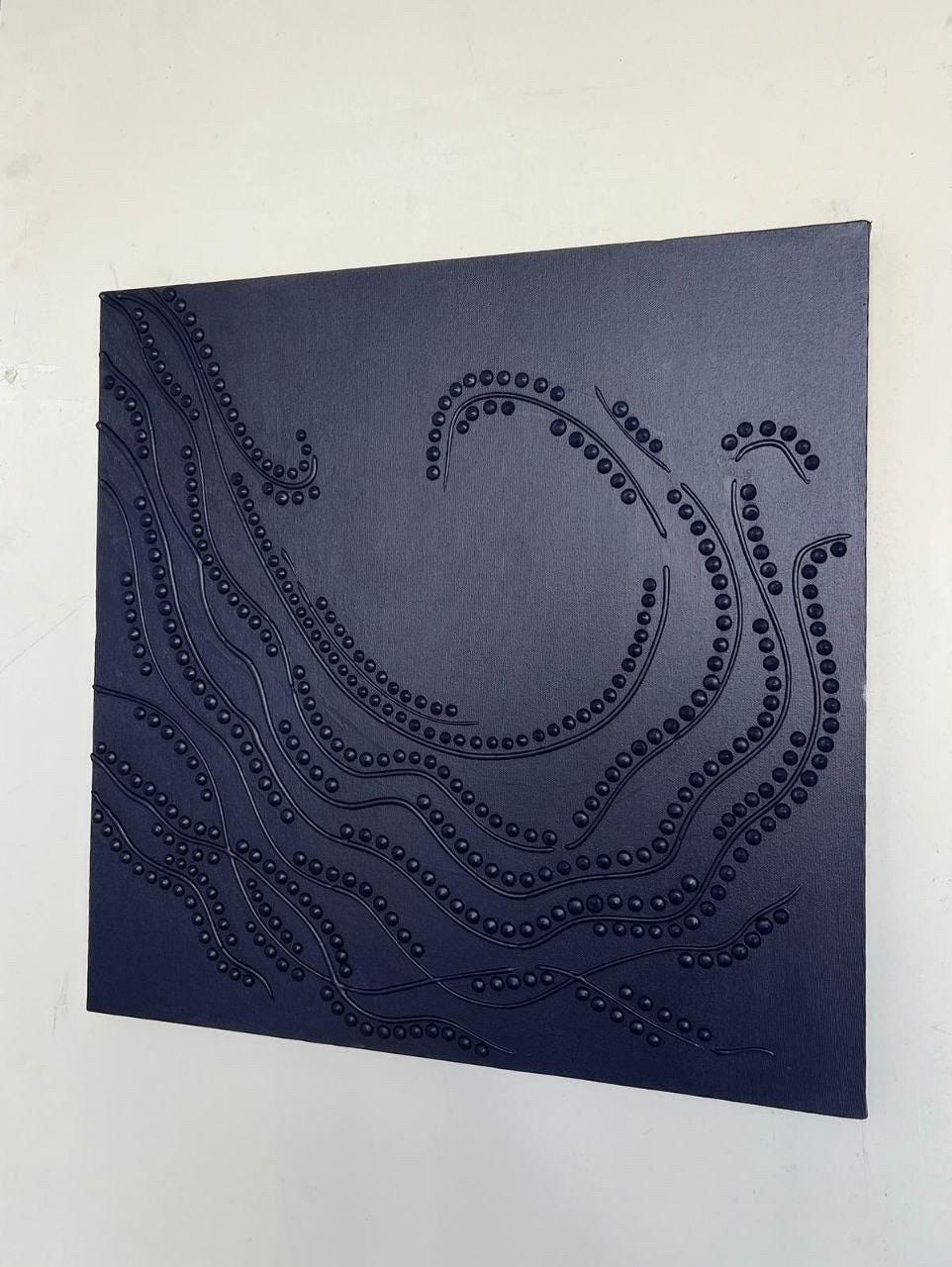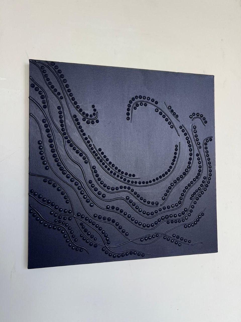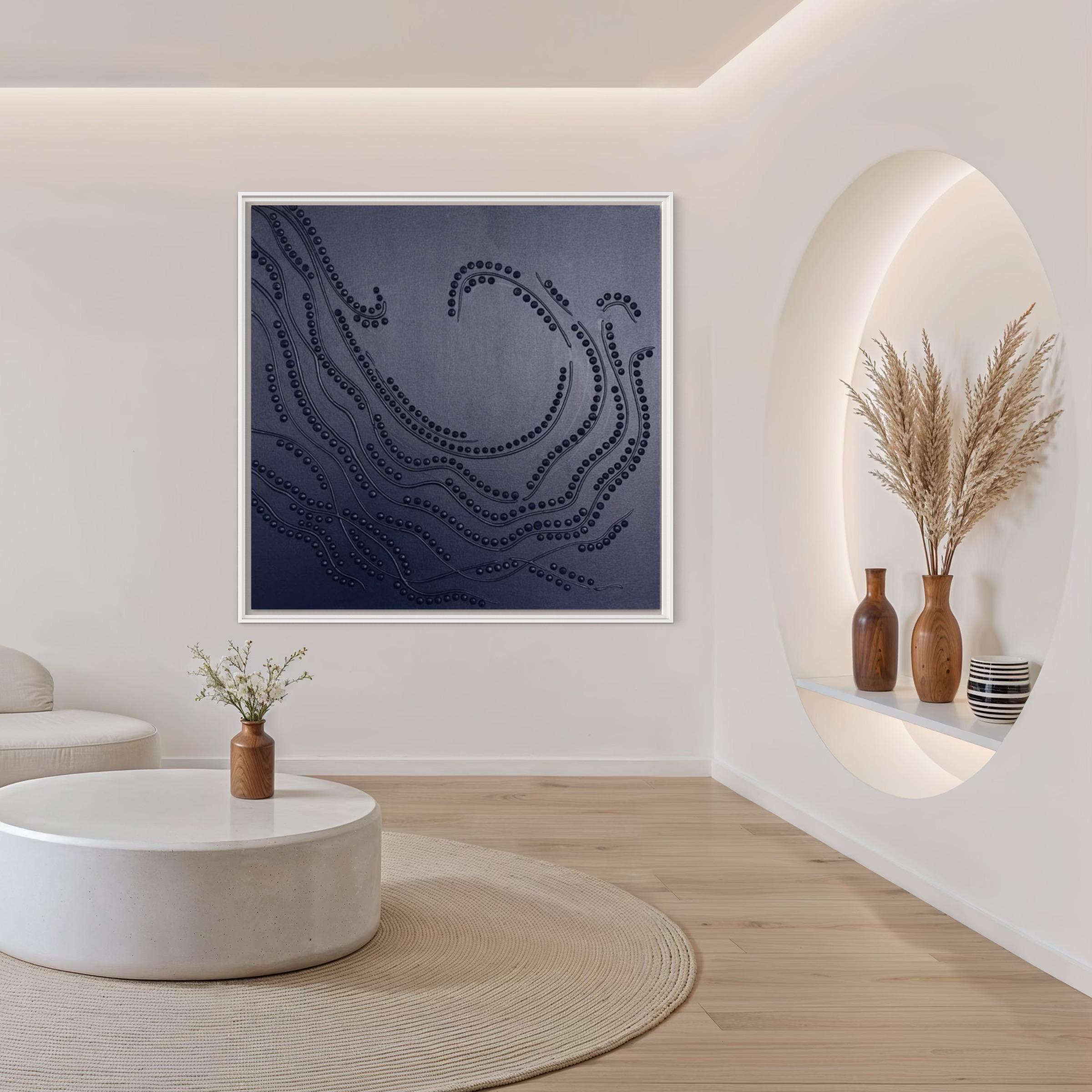Handmade large navy blue textured abstract wall art with 3D dot texture. Perfect neutral modern decor for living rooms, bedrooms, and interiors.