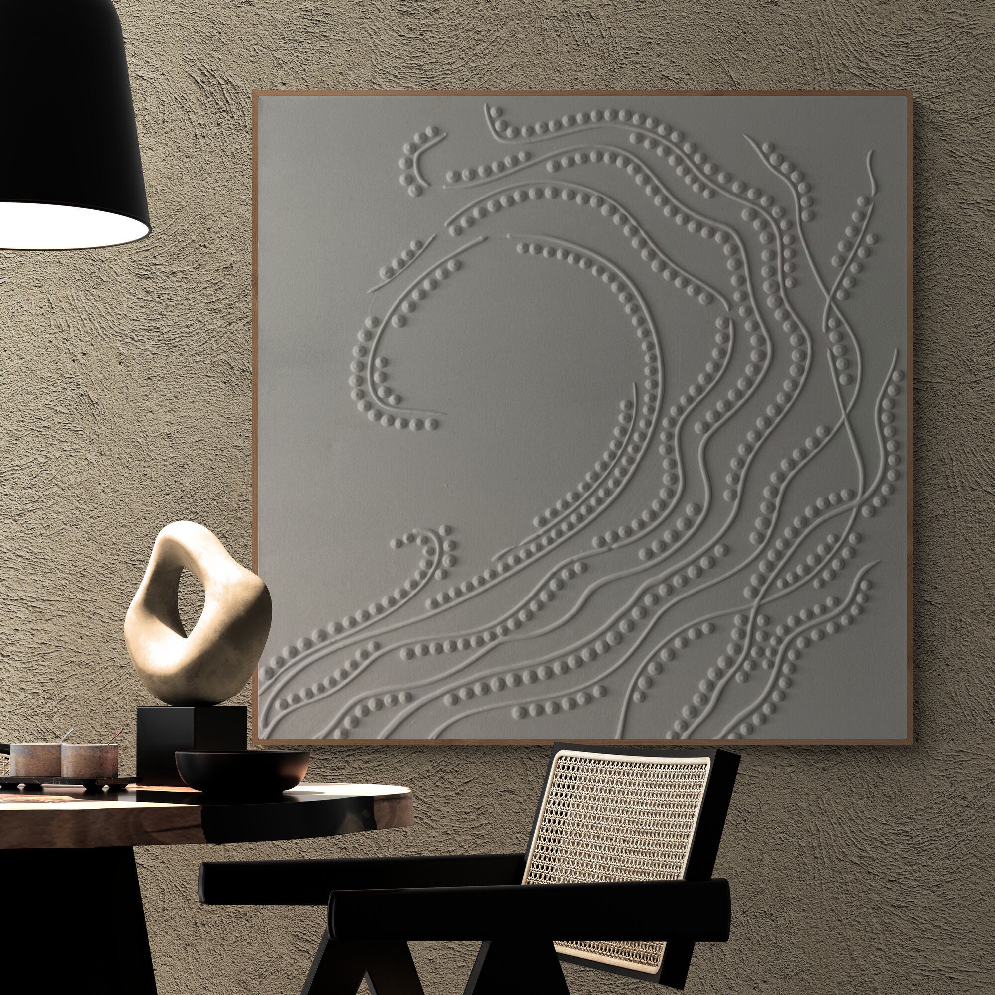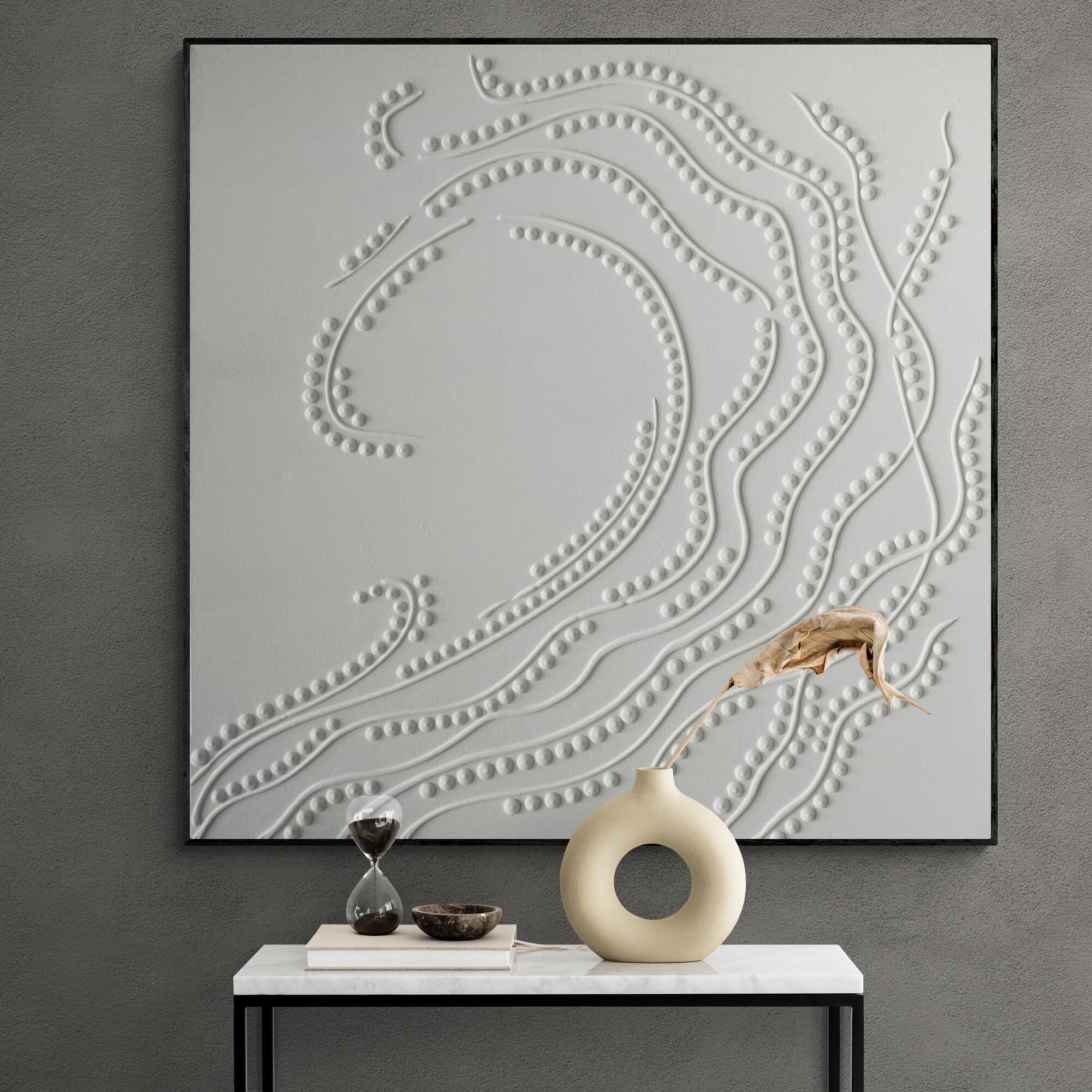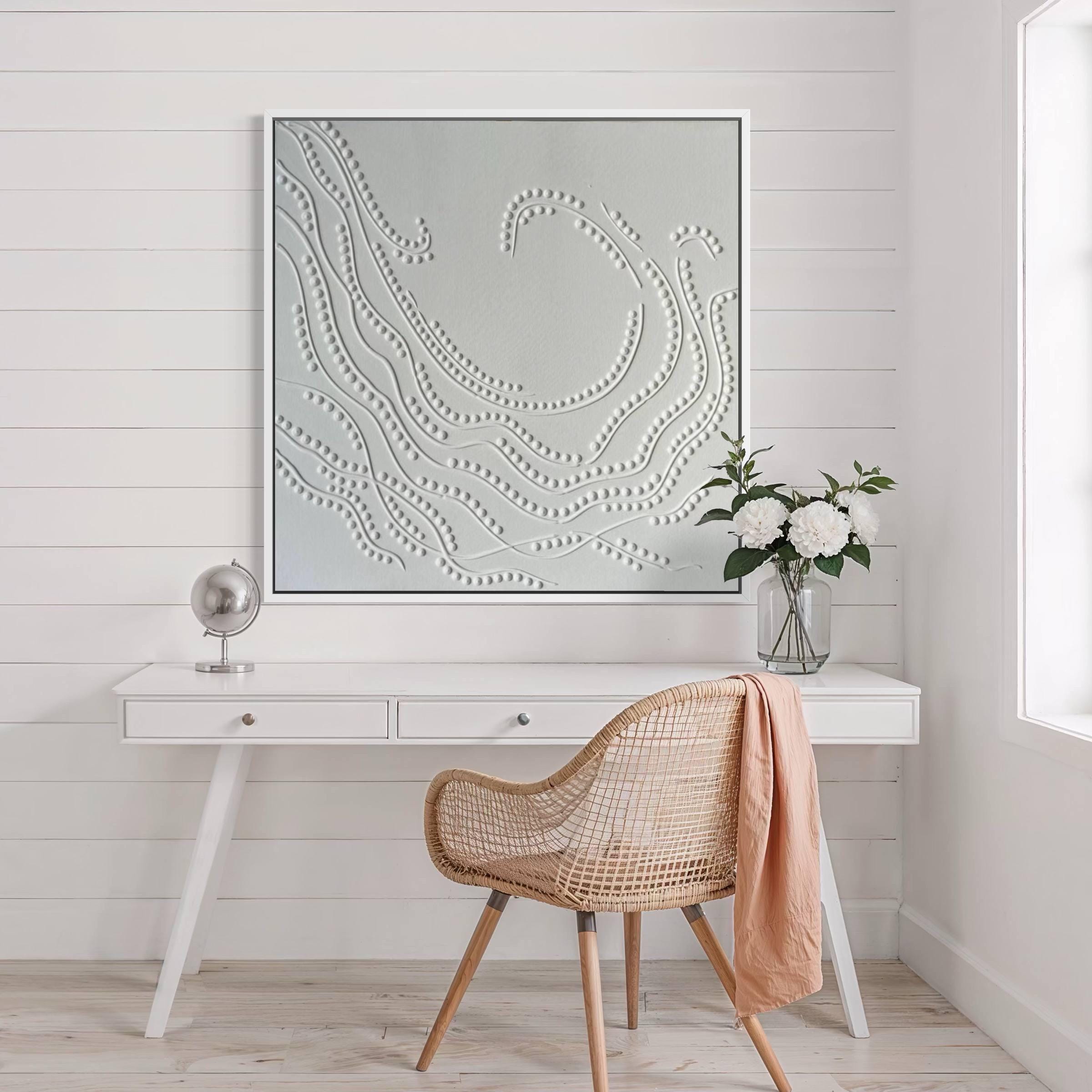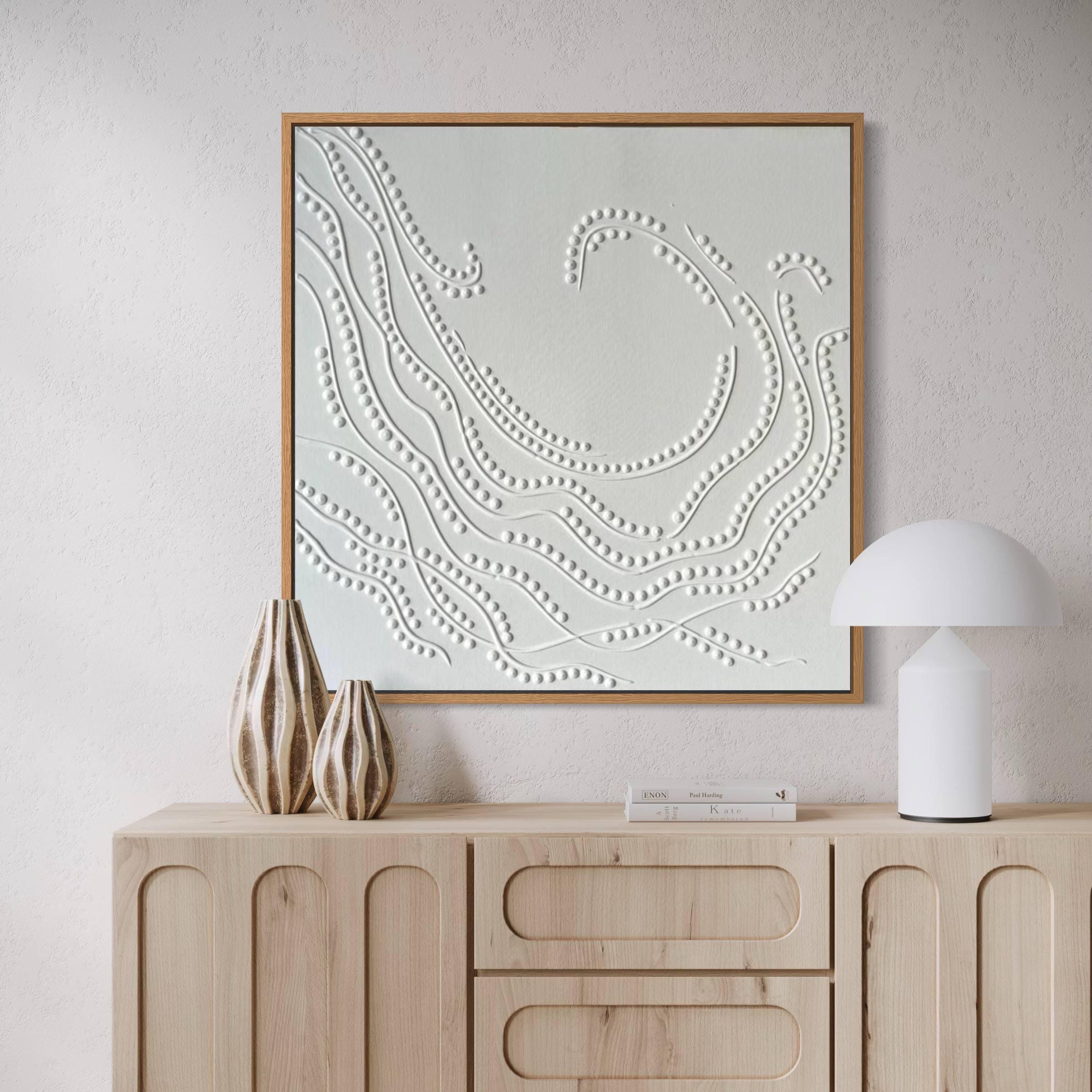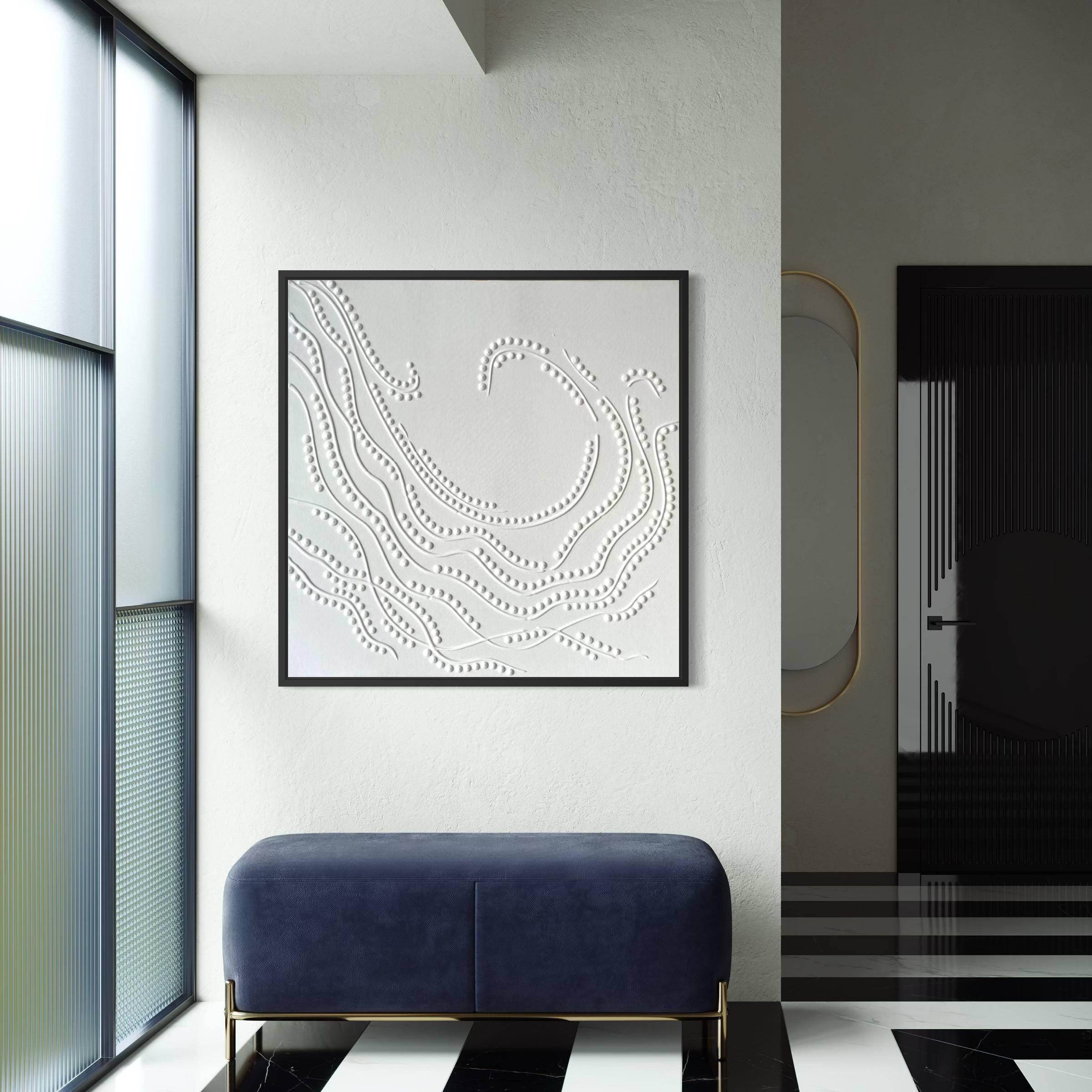 Bring modern elegance and calm energy into your home with this white textured wall art. Handcrafted on high-quality canvas, this 3D abstract painting features flowing embossed patterns that play beautifully with light and shadow. Perfect for minimalist, Scandinavian, or Japandi interiors, it adds depth and sophistication to any room.
