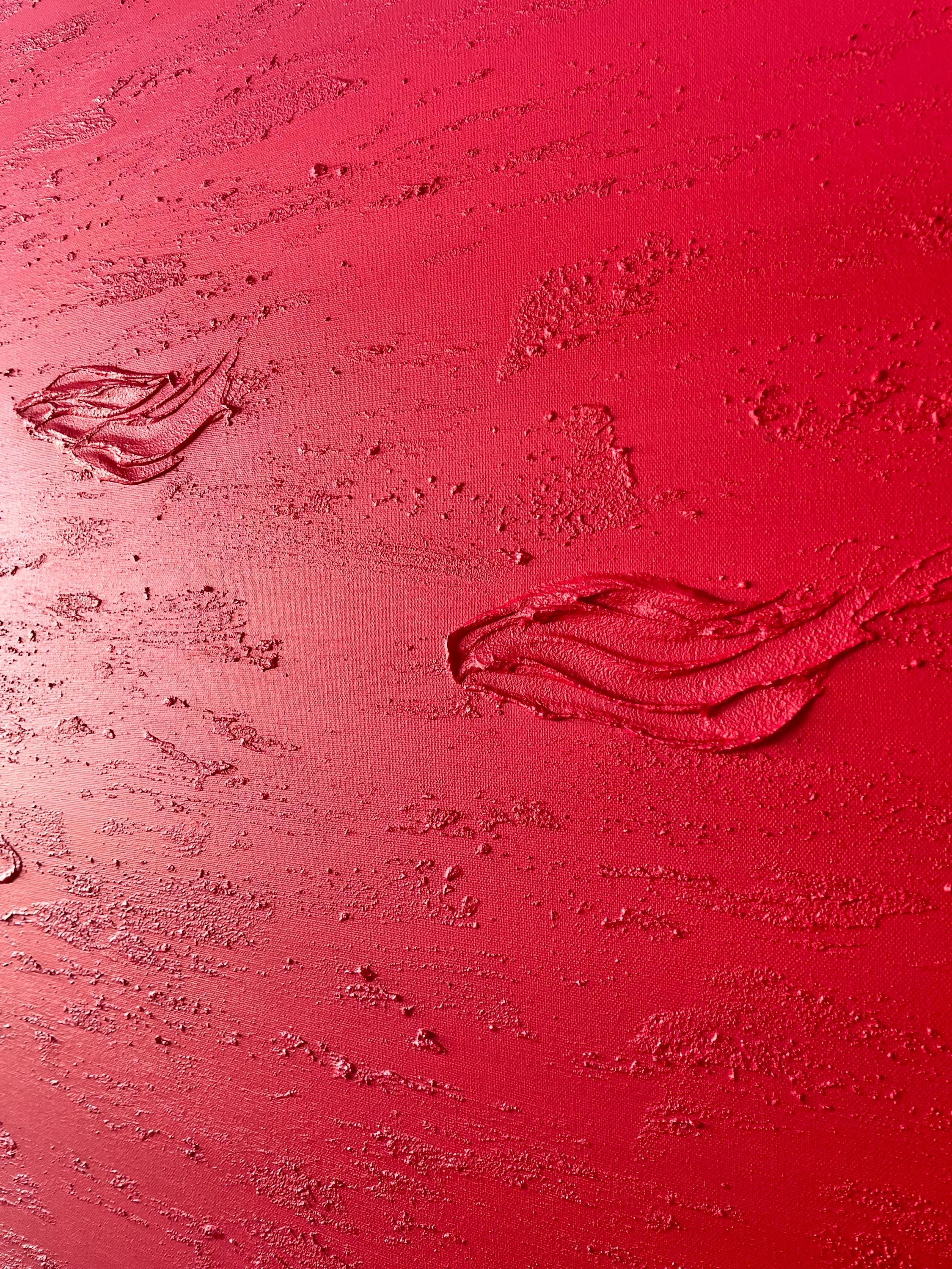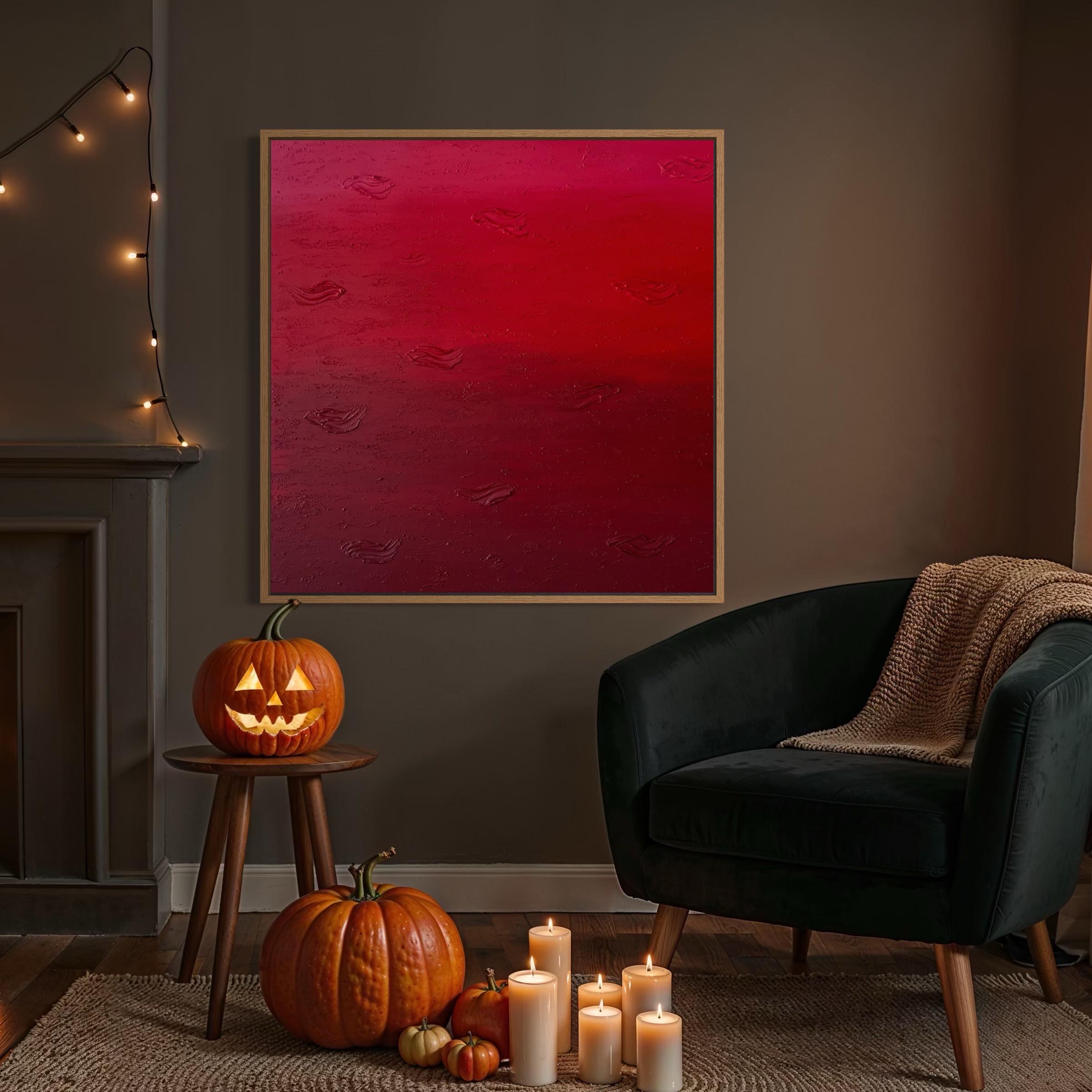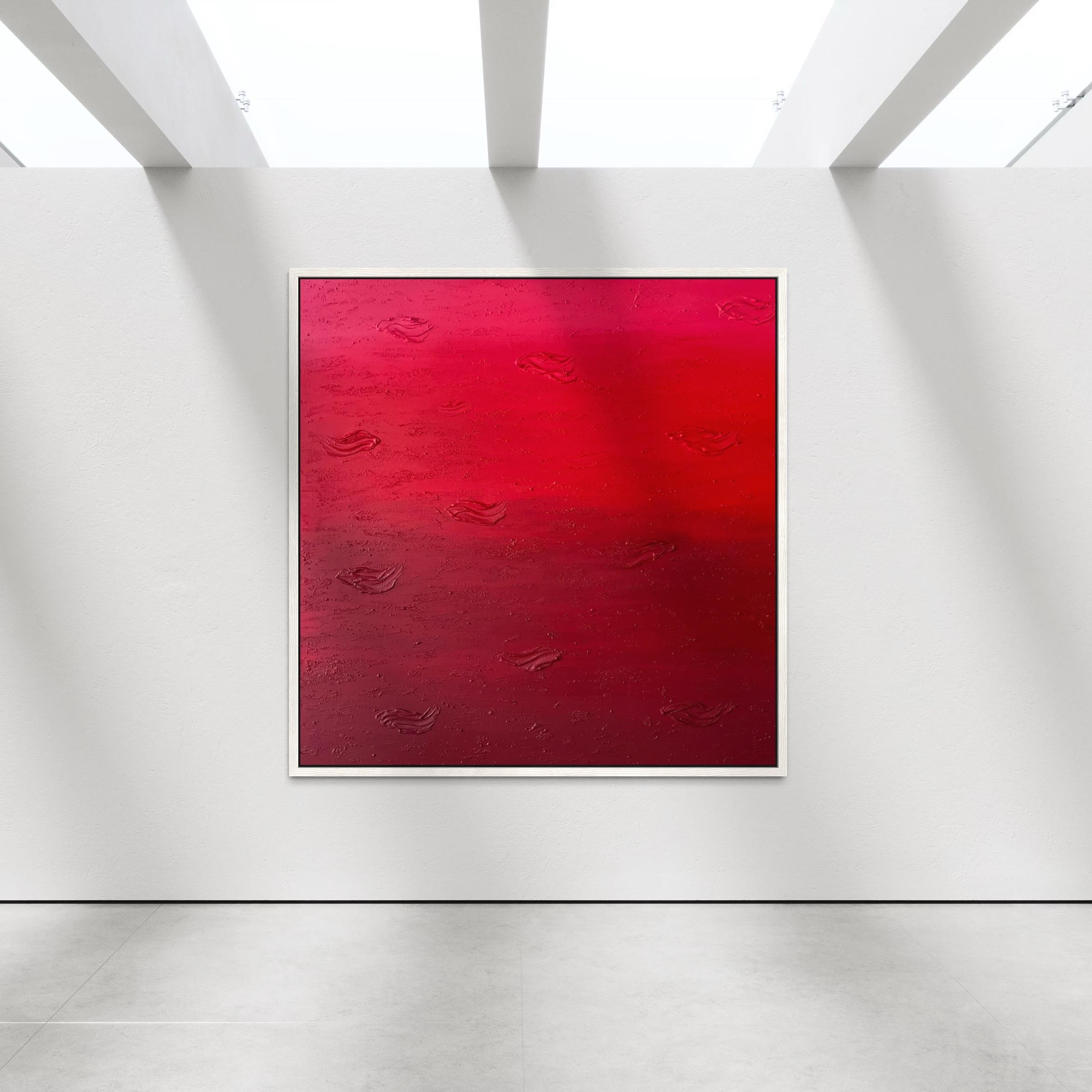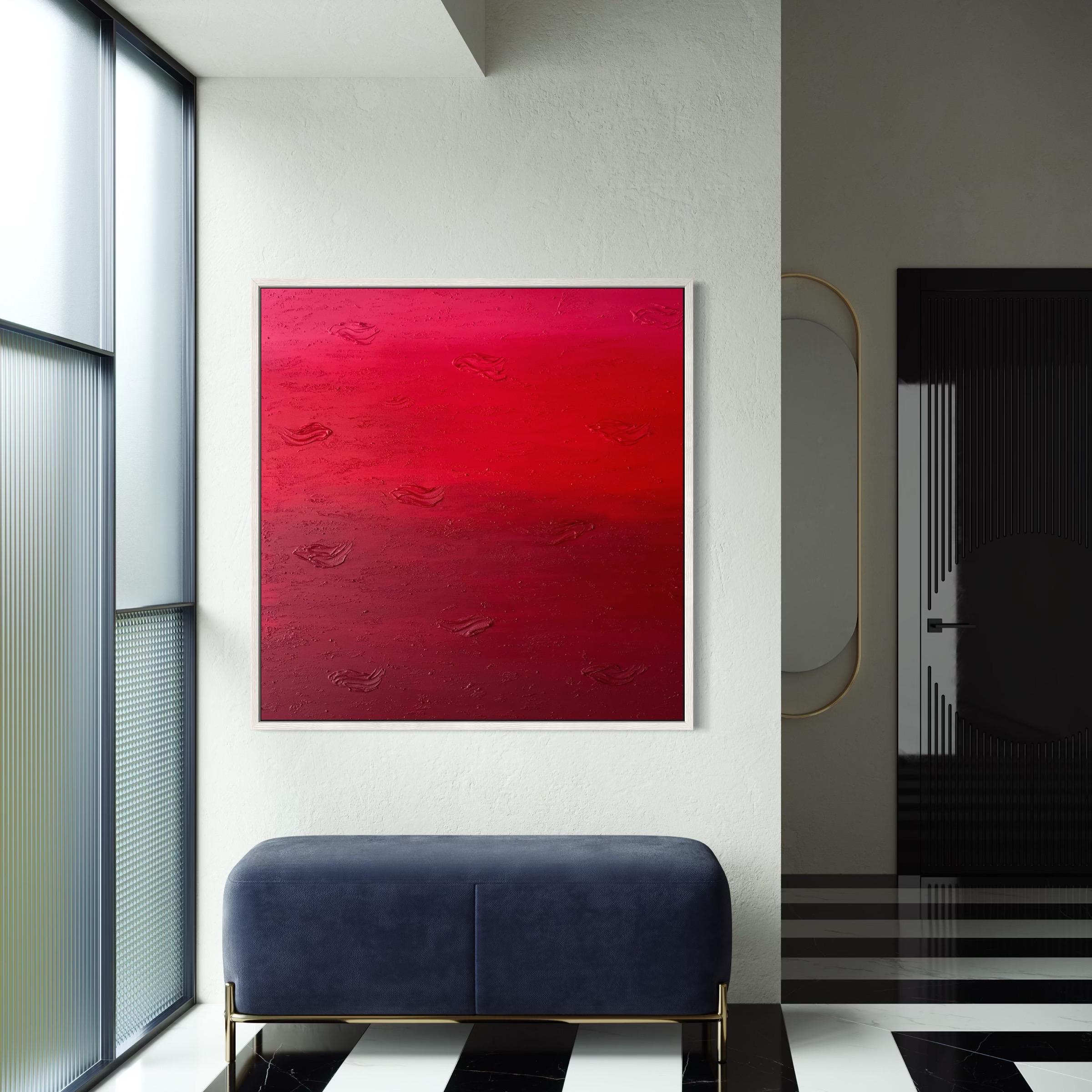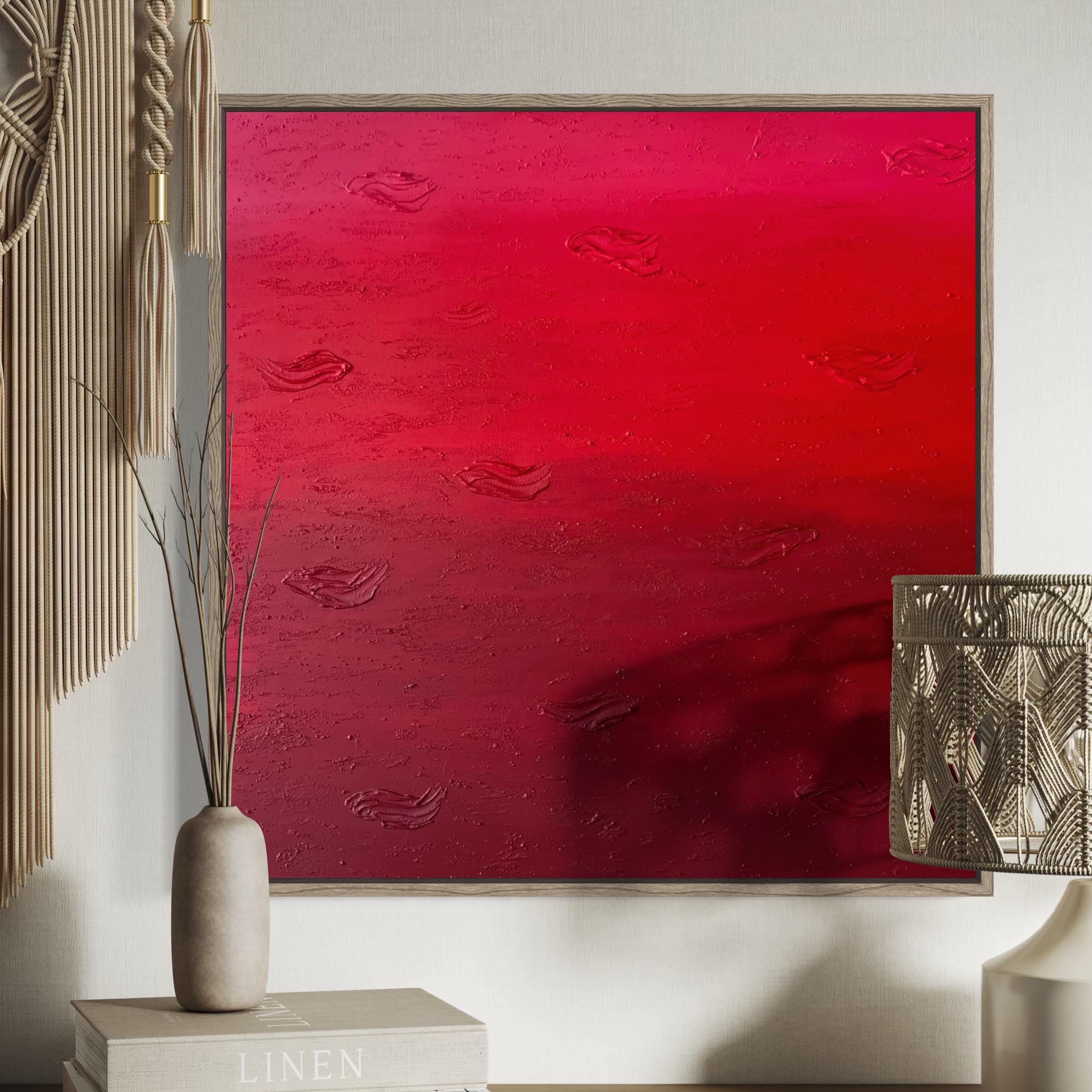 This original hand-painted artwork features rich shades of red with textured abstract details that add depth and movement. Its powerful yet minimalist design brings warmth, drama, and emotion into any space.