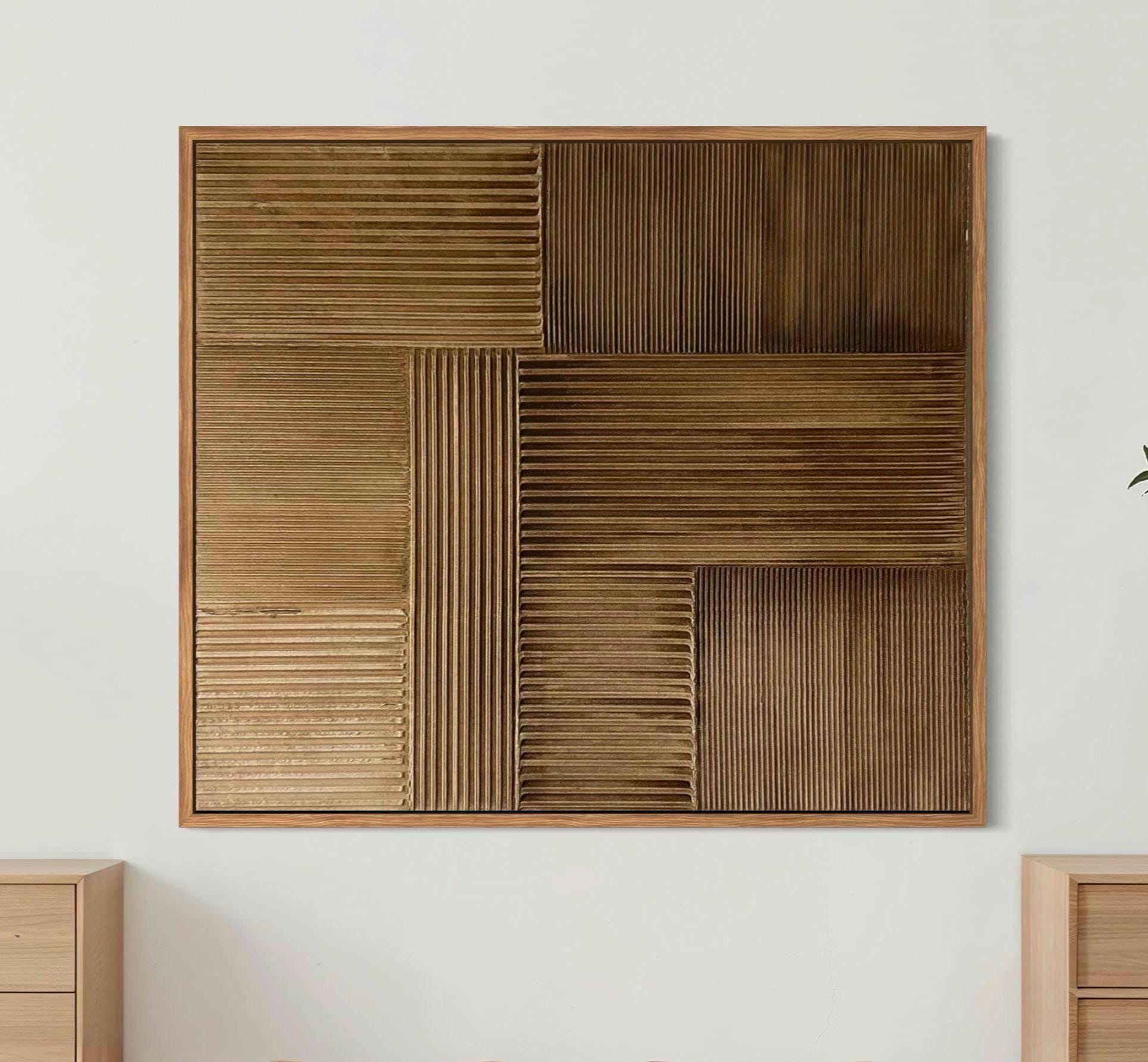 This artwork adds texture, depth, and warmth without overpowering the space.