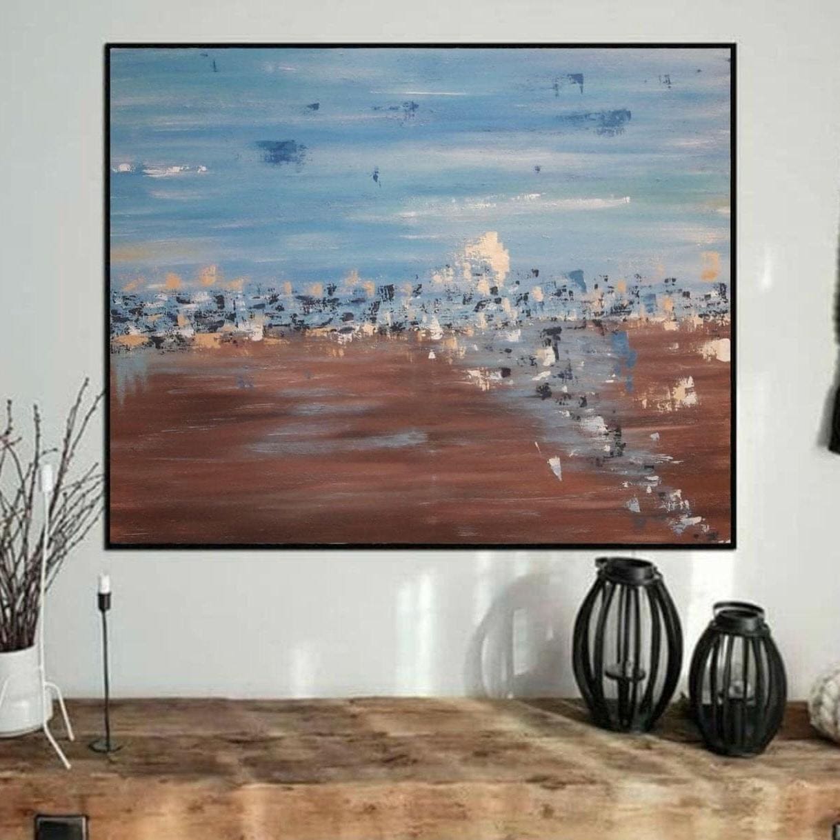 Large Abstract Landscape Painting: Modern Living Room Canvas Wall Art