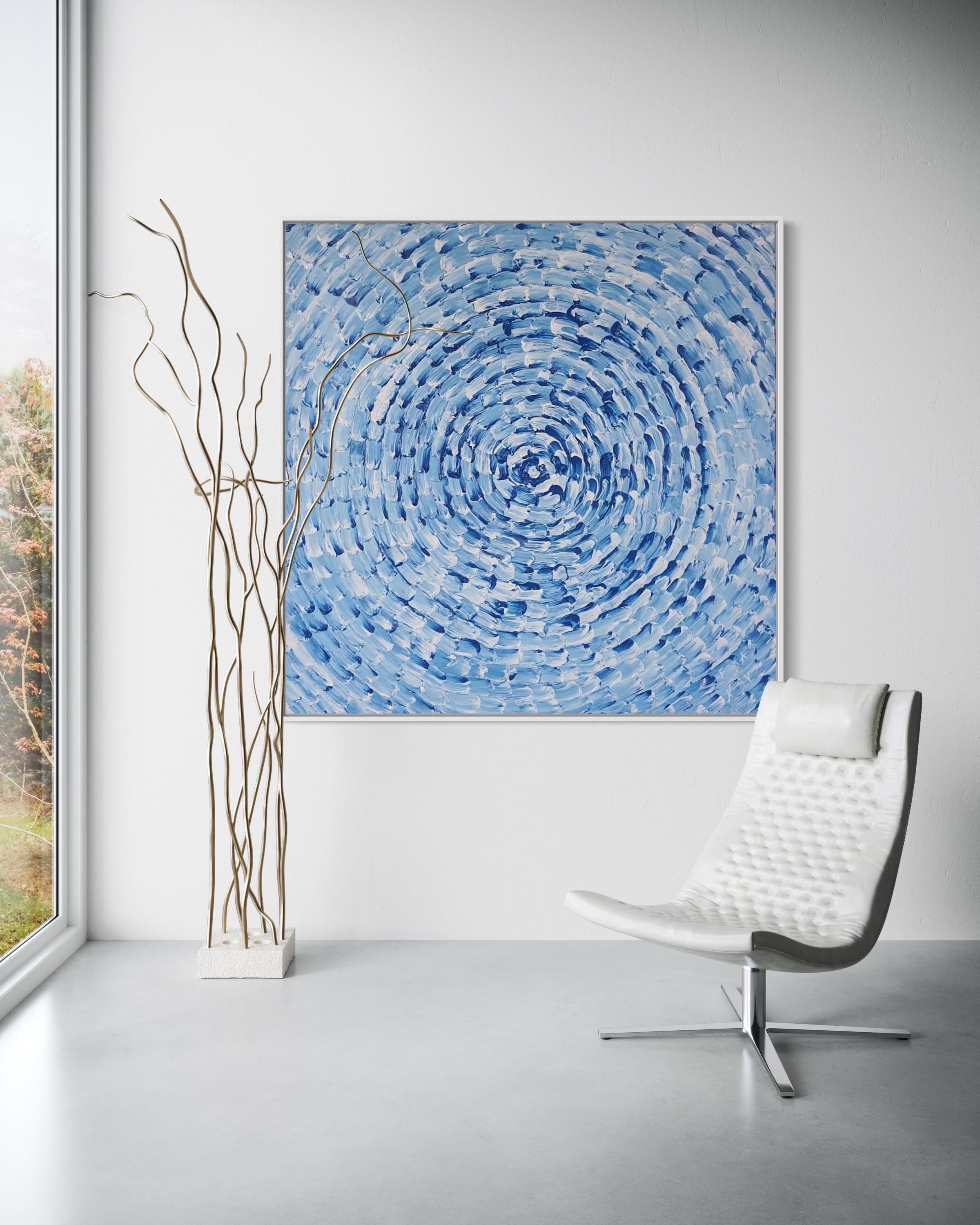 Large Painting Oversize blue white Abstract picture Extra Large Modern Original canvas Contemporary water swirl Wall Art spiral Painting