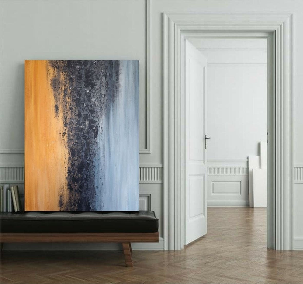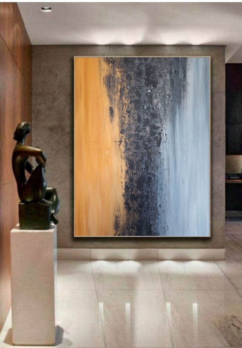 Large Painting Oversize Abstract Wall Art Extra Large Modern Canvas Texture Original Painting Canvas Contemporary Art Blue & Yellow Shades
