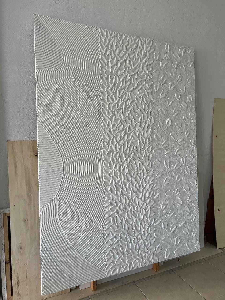 Extra Large White Textured Wall Art Abstract 3D Painting Modern Plaster Artwork Handmade Canvas