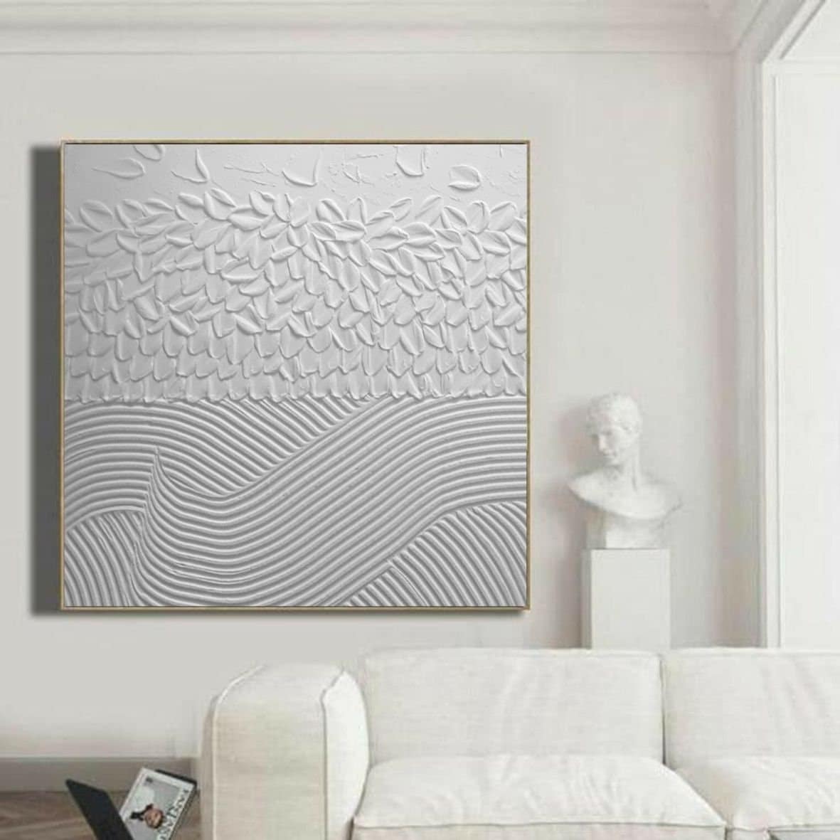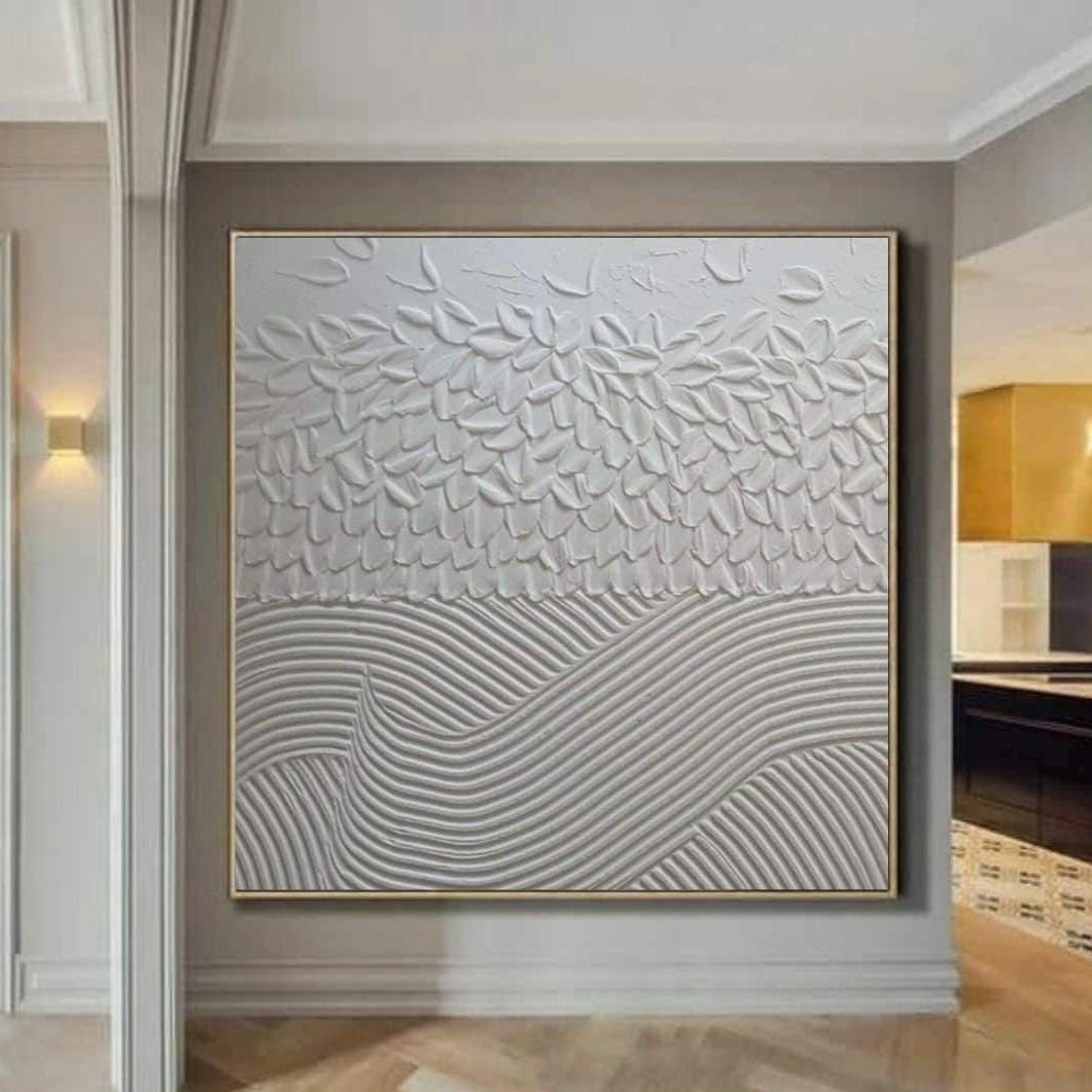 Oversized White Textured Wall Art Abstract Plaster 3D Painting Handmade Canvas Neutral Home Decor