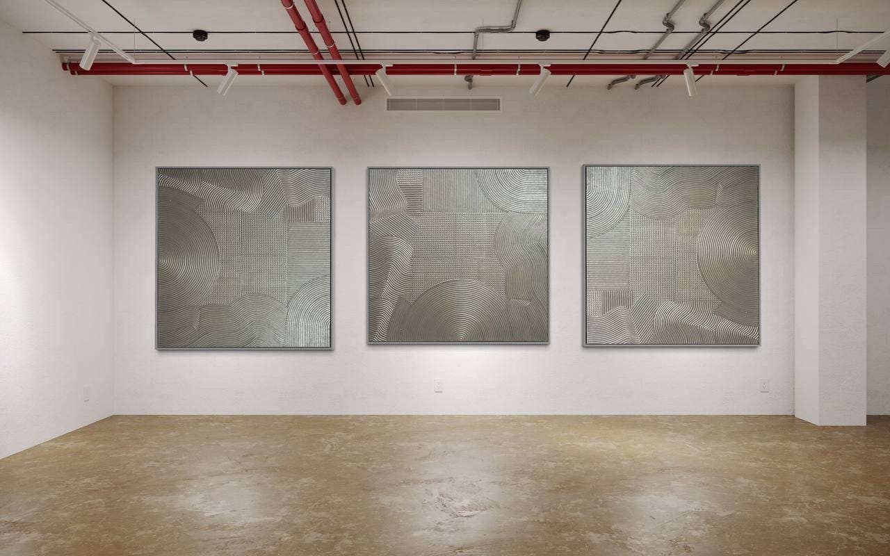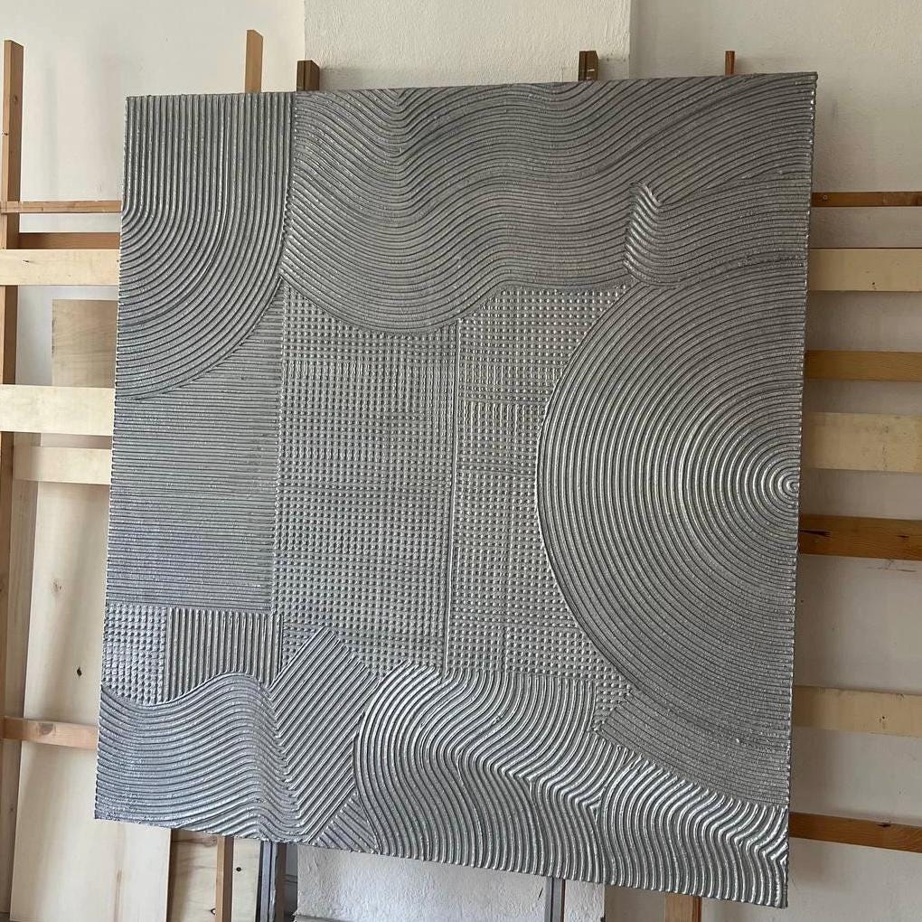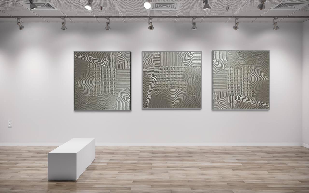 Elevate your interior with this stunning set of 3 textured silver wall art panels, handcrafted to bring depth, luxury, and modern sophistication into your home. These large abstract paintings feature intricate geometric patterns, raised texture, and rich metallic silver tones that shift beautifully in the light. Perfect for anyone who loves modern decor, contemporary wall art, and luxury home styling, this triptych instantly transforms any room into a refined and elegant space.