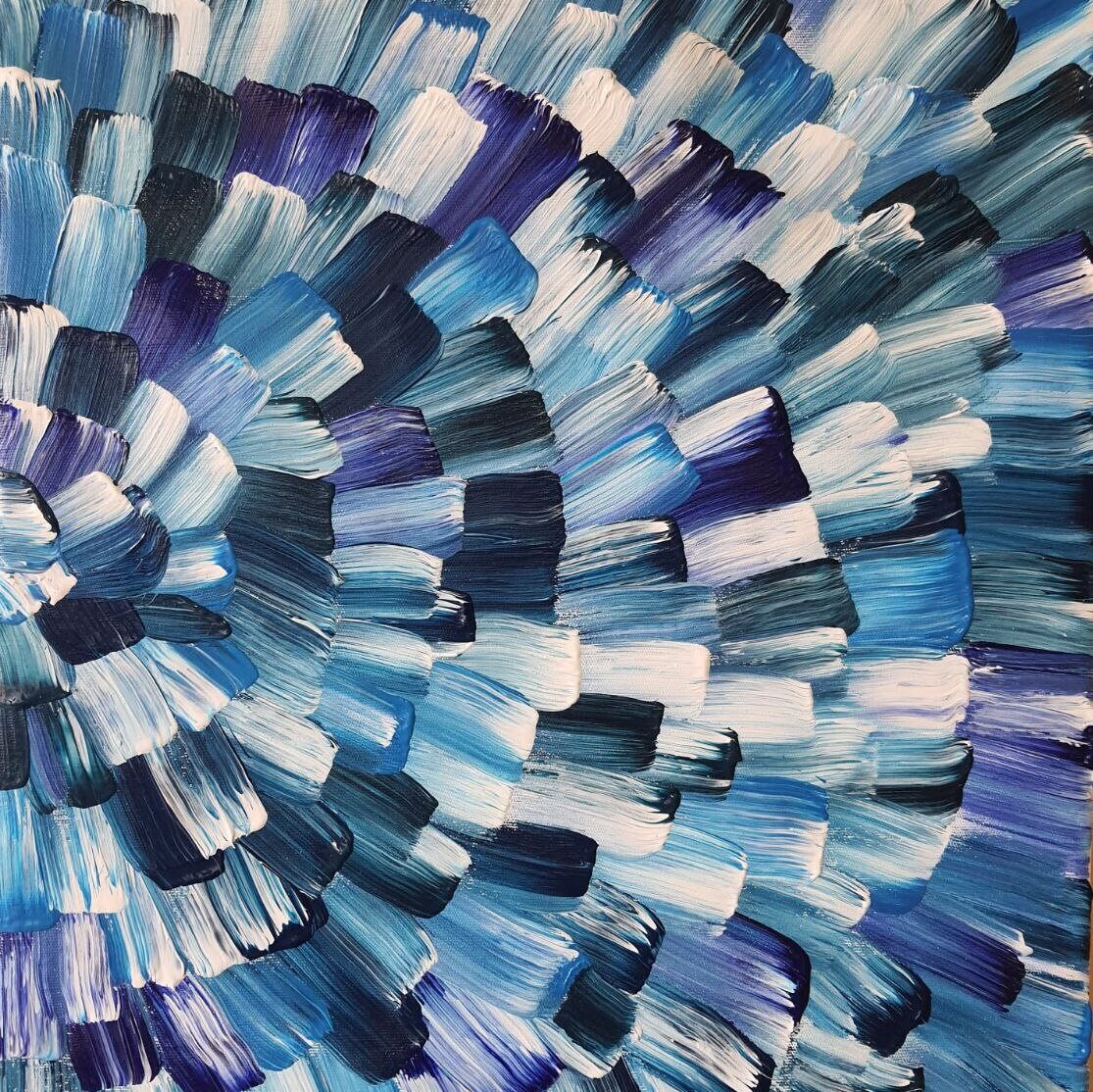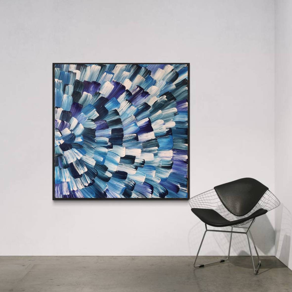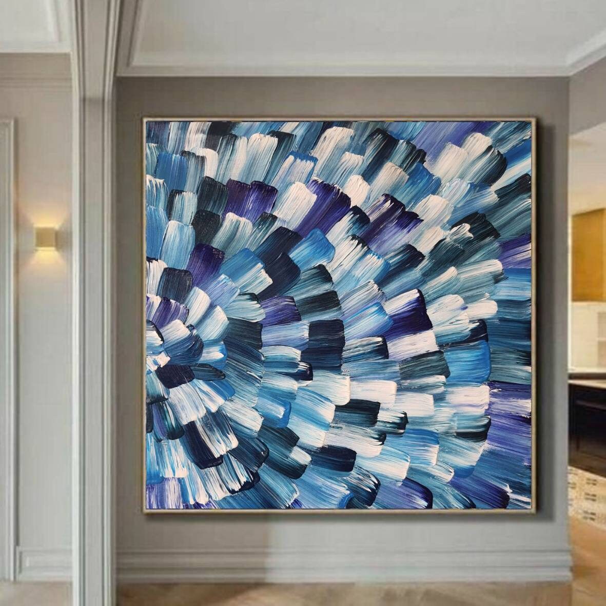 Extra large modern acrylic wall art. Contemporary abstract wall art blue,navy,indigo, violet, white shadows.