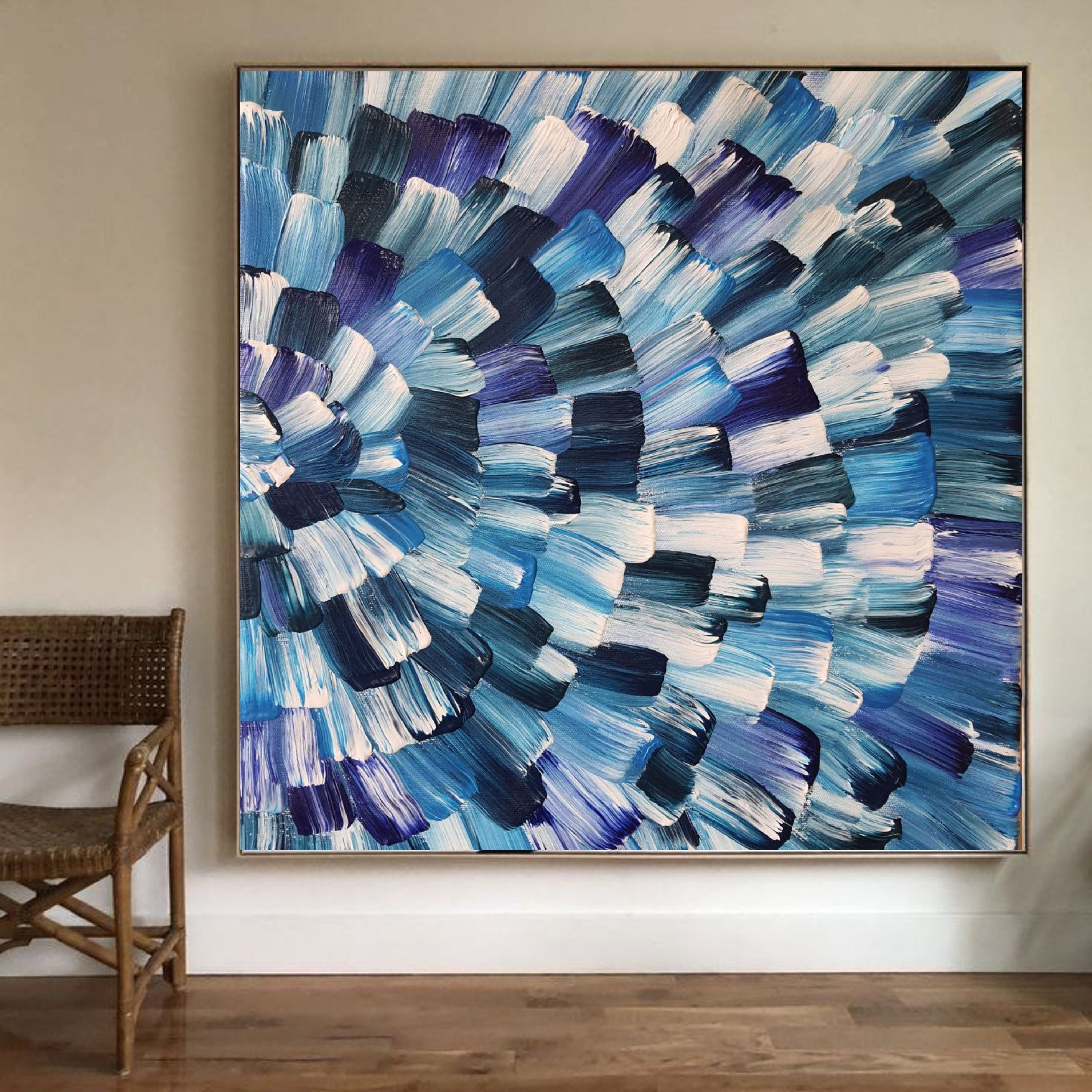 Large Blue Abstract Painting: Modern Colorful Canvas Wall Art