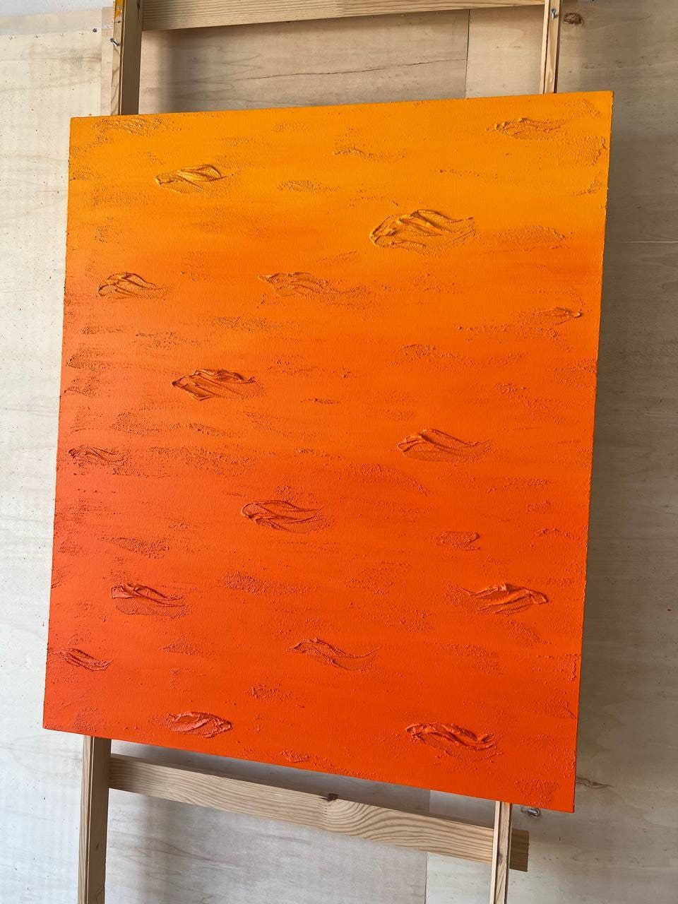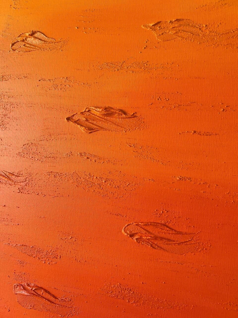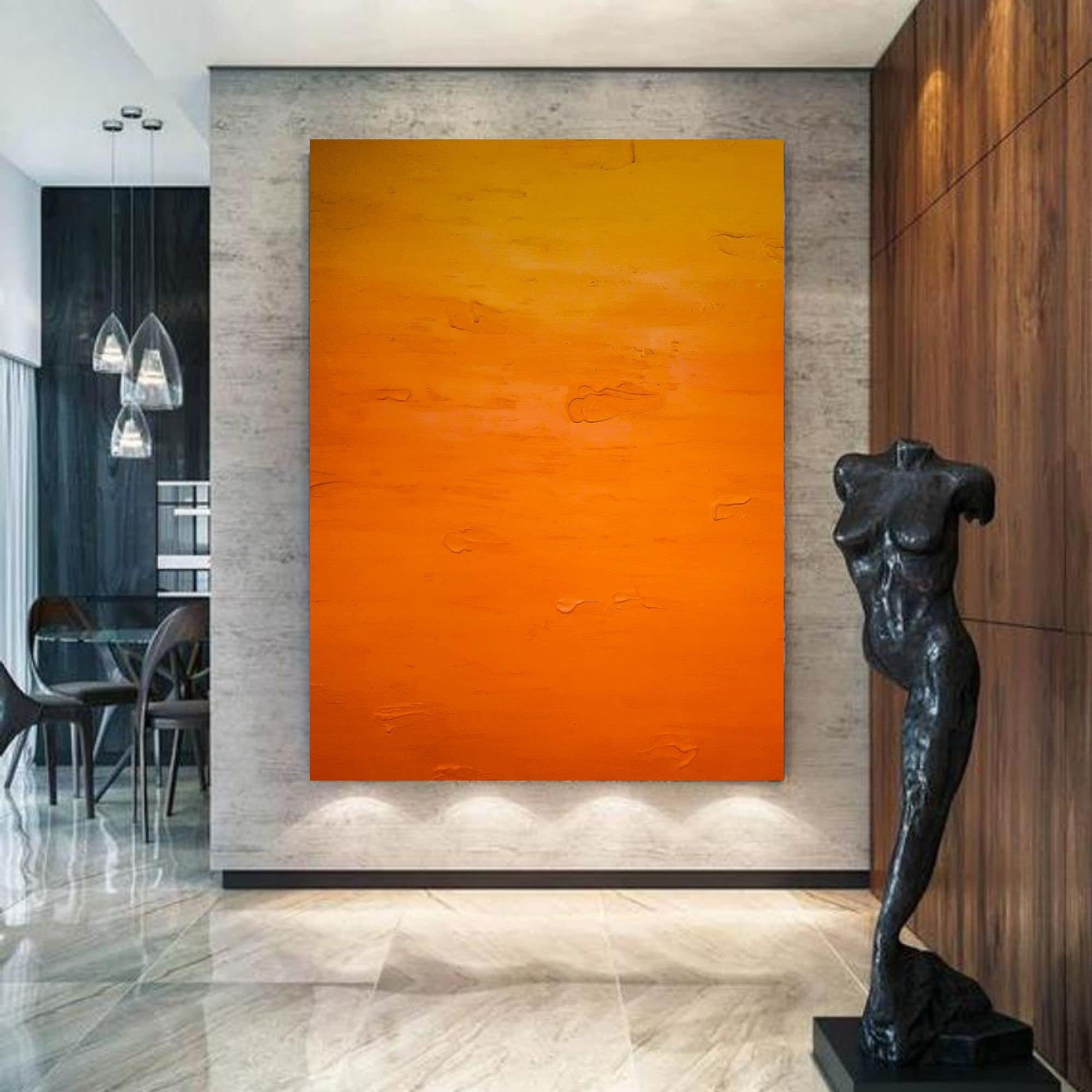 Large Orange Abstract Plaster Painting, Textured Modern Wall Art