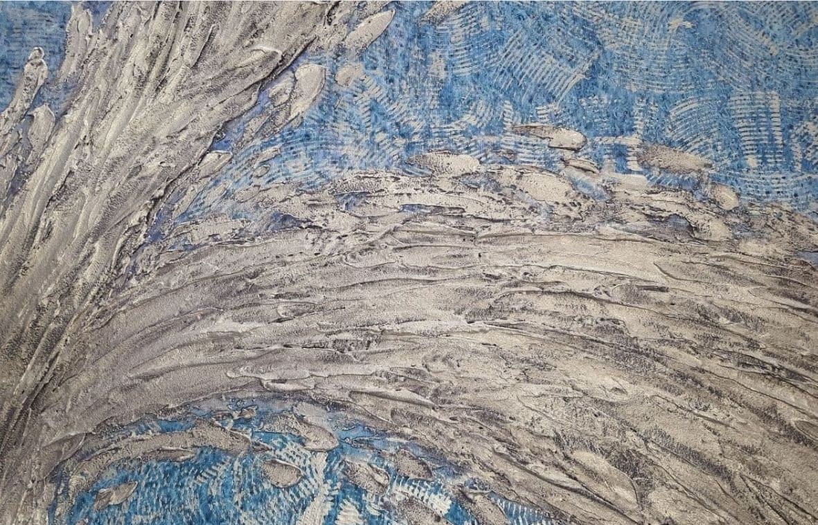 Large Abstract Painting: Turquoise, Champagne, and Golden Texture on Canvas