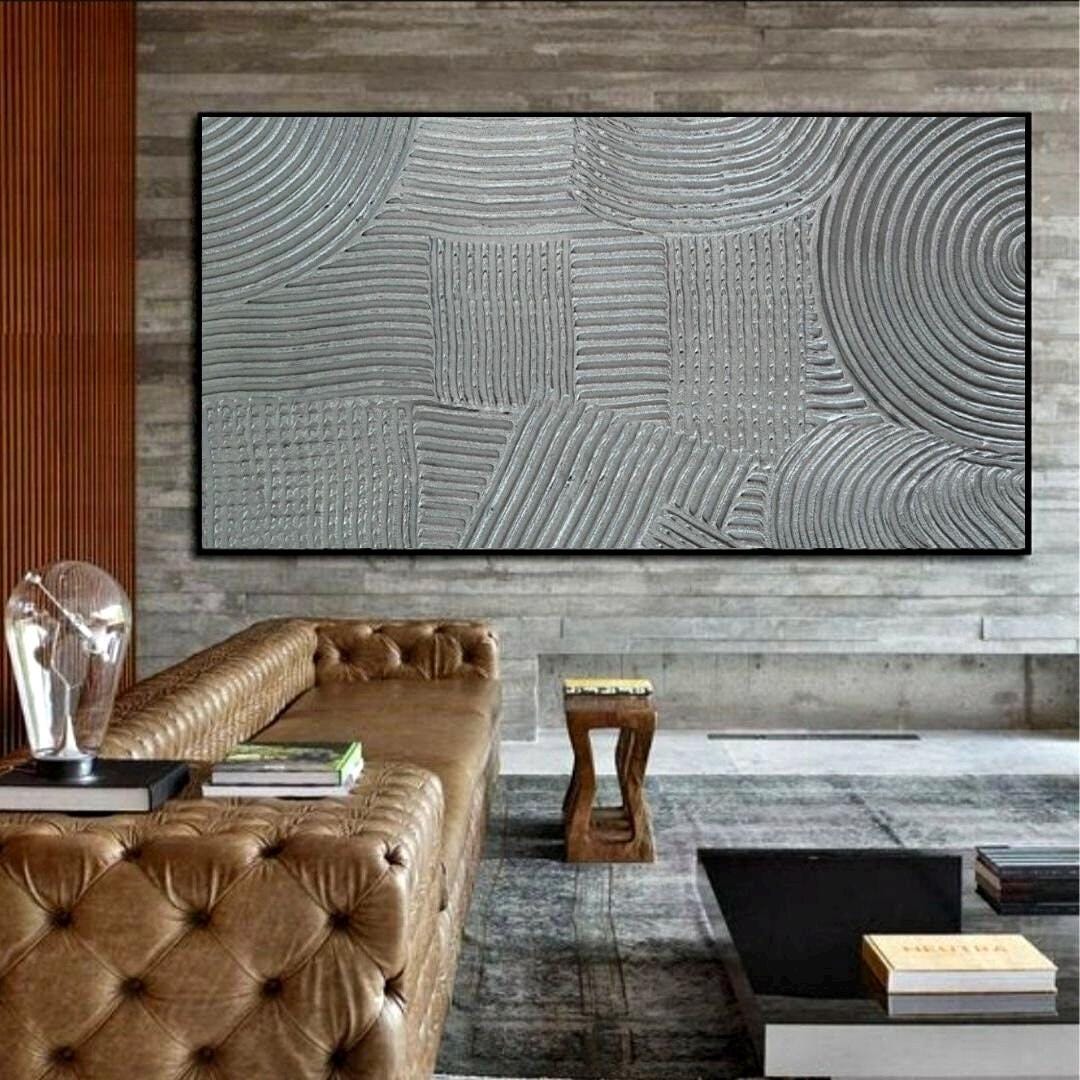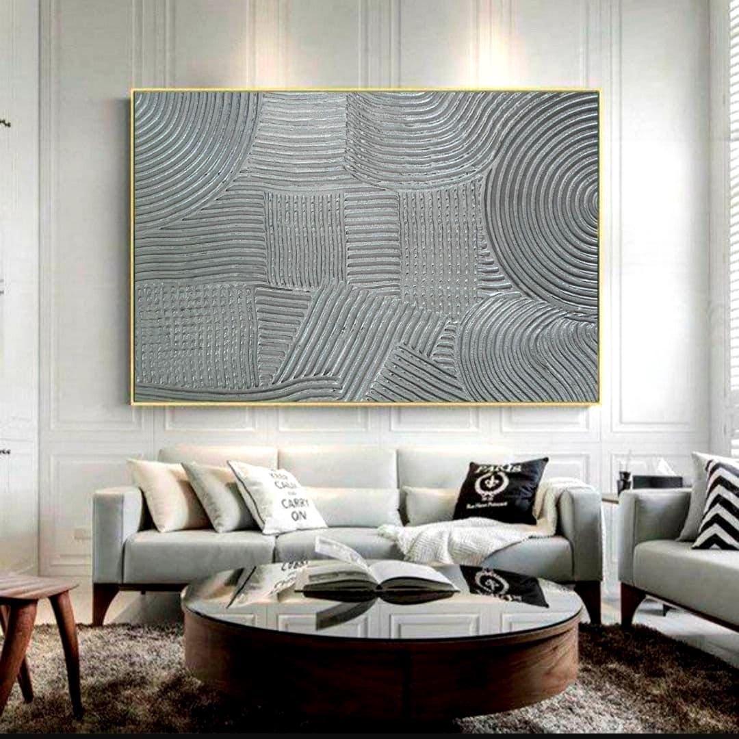 The painting’s silver metallic tones and minimal geometric texture make it a perfect fit for modern, luxury, japanese,boho, wabi-sabi or neutral interiors — ideal for your living room, bedroom, hallway, or office.