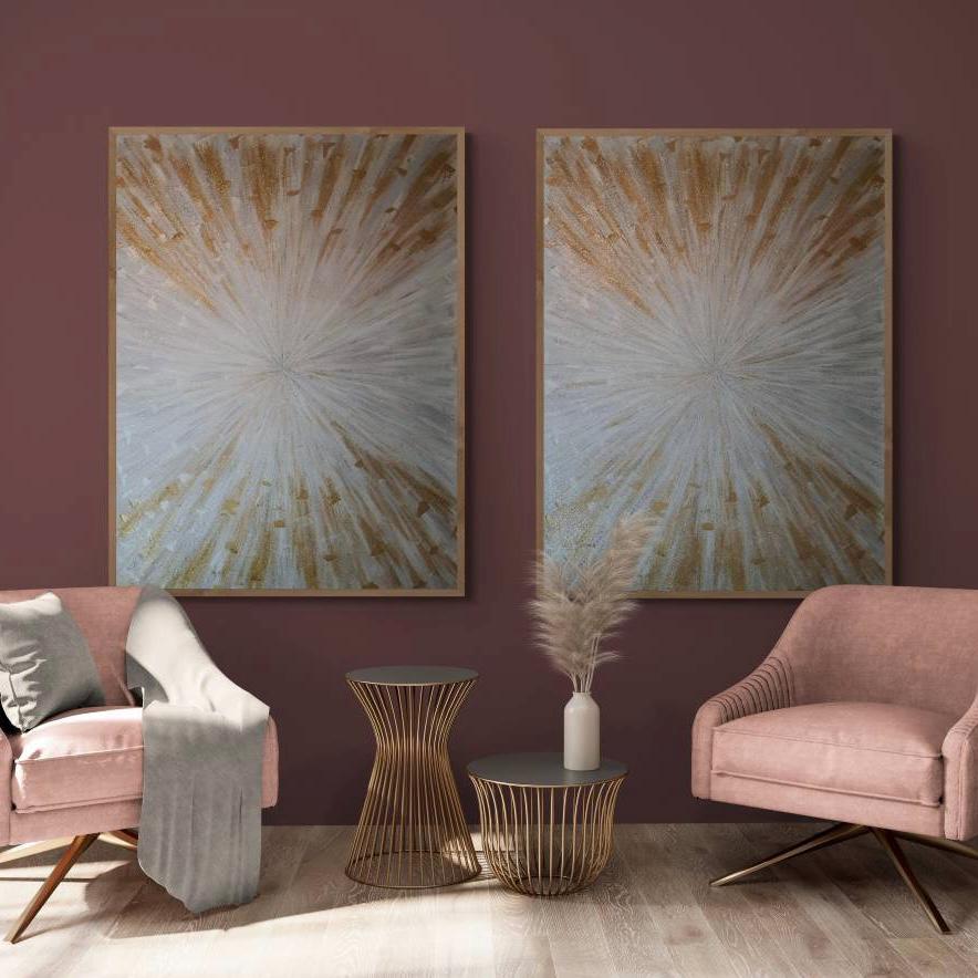 Large Painting, Oversize Set of 2 shine abstract elegant painting fantasy wall art bright light canvas Original Gold Silver Glitter Wall Art