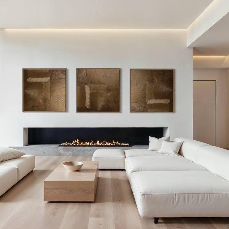 Crafted using high-quality materials—including premium canvas, heavy texture paste, and metallic gold acrylic—these 3D wall panels serve as the perfect statement piece for large empty walls. Their warm golden finish adds depth, dimension, and a luxurious glow to interiors, complementing wood tones, neutral palettes, black accents, and modern furniture.