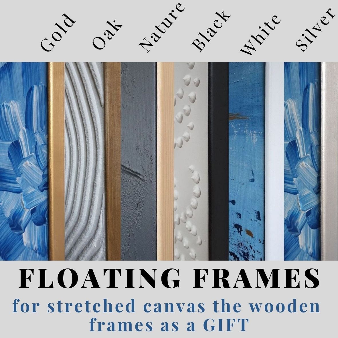 I provide wooden floating frames for stretched canvas painting as a GIFT. You can order colors that are suitable for your interior ( Black, White, Gold, Silver, Natural):