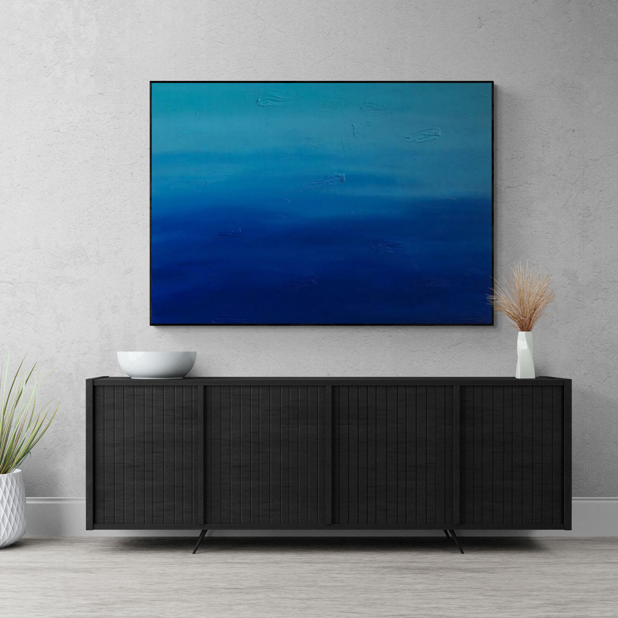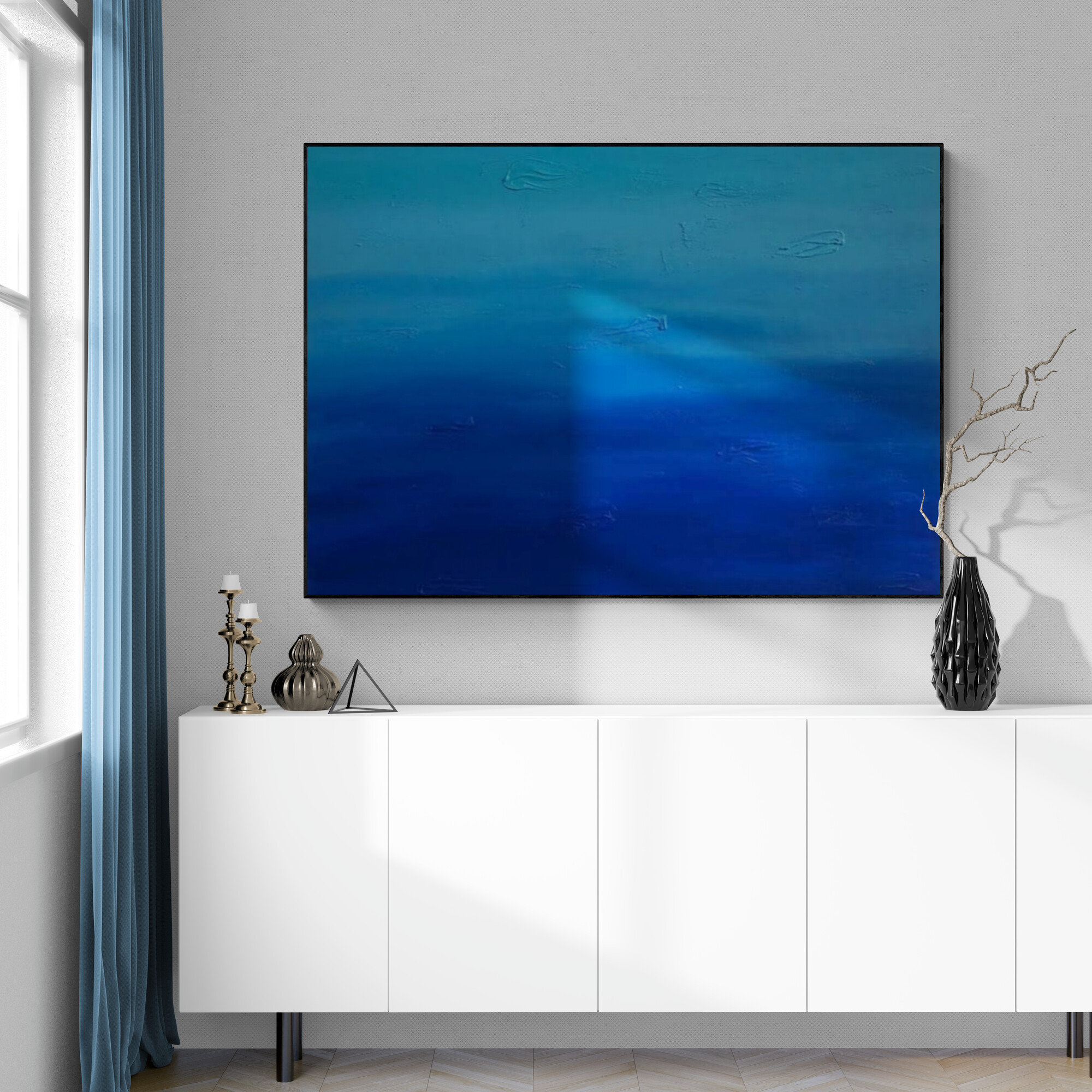 Large Blue Painting Oversize Abstract Landscape Wall Art, Extra Large Modern Seascape Canvas, Blue Transition Wall Art, Monochrome Painting