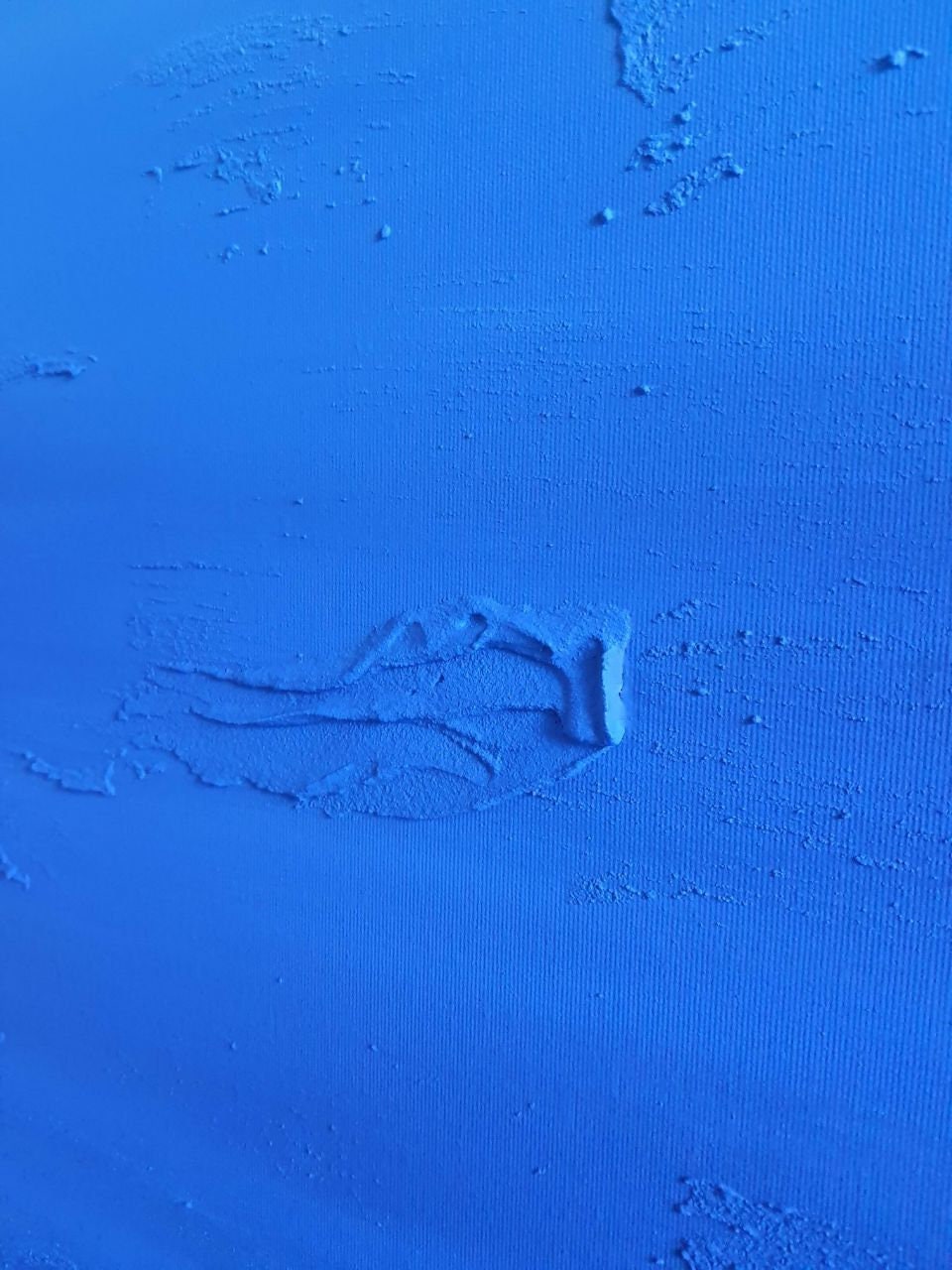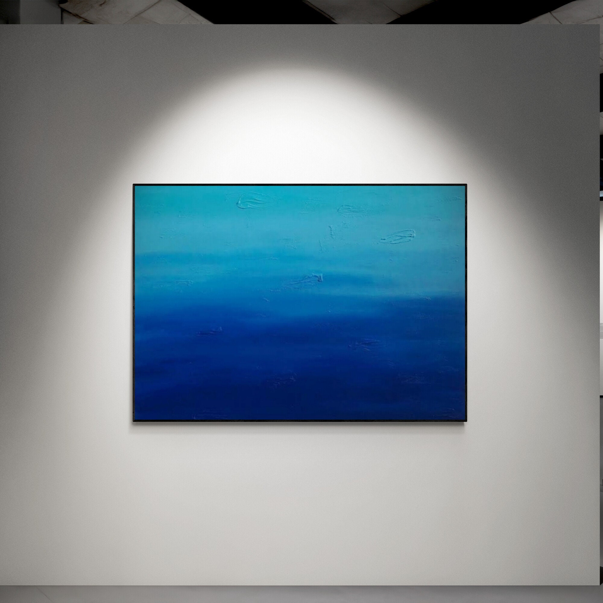 Large Blue Abstract Seascape Painting: Modern Monochrome Canvas Art