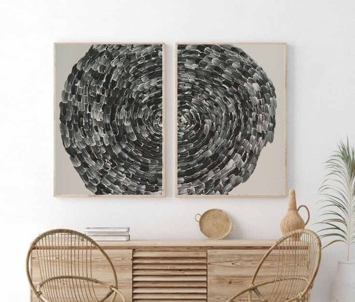 Black and White Abstract Acrylic Painting Set: Modern Wall Art