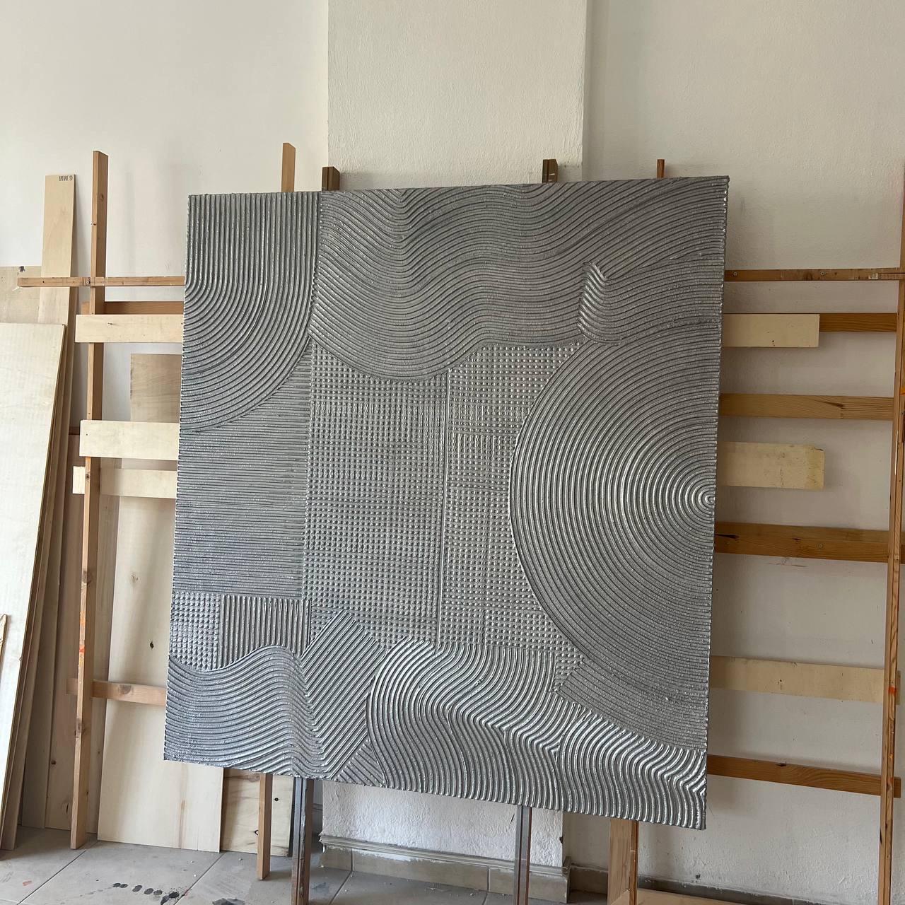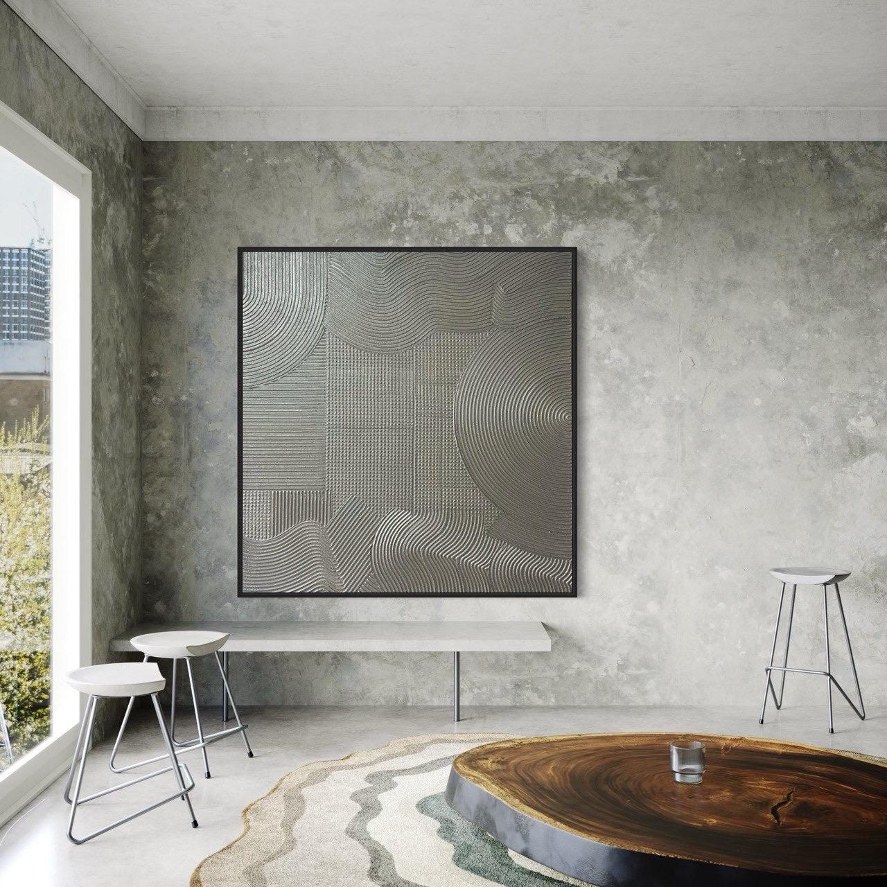 Large Painting Silver 3d Texture Oversize Abstract plaster Wall Art Hallway Modern Metallic volumeTexture Canvas Original Wall Art Decor