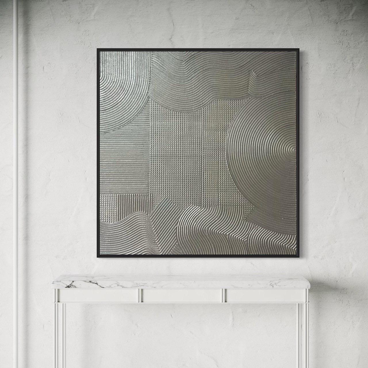 Large Silver 3D Texture Painting: Abstract Metallic Plaster Wall Art