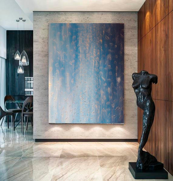 Large Painting Oversized Abstract Living Room Wall Art Extra Large Modern Canvas Blue Transition, Rich