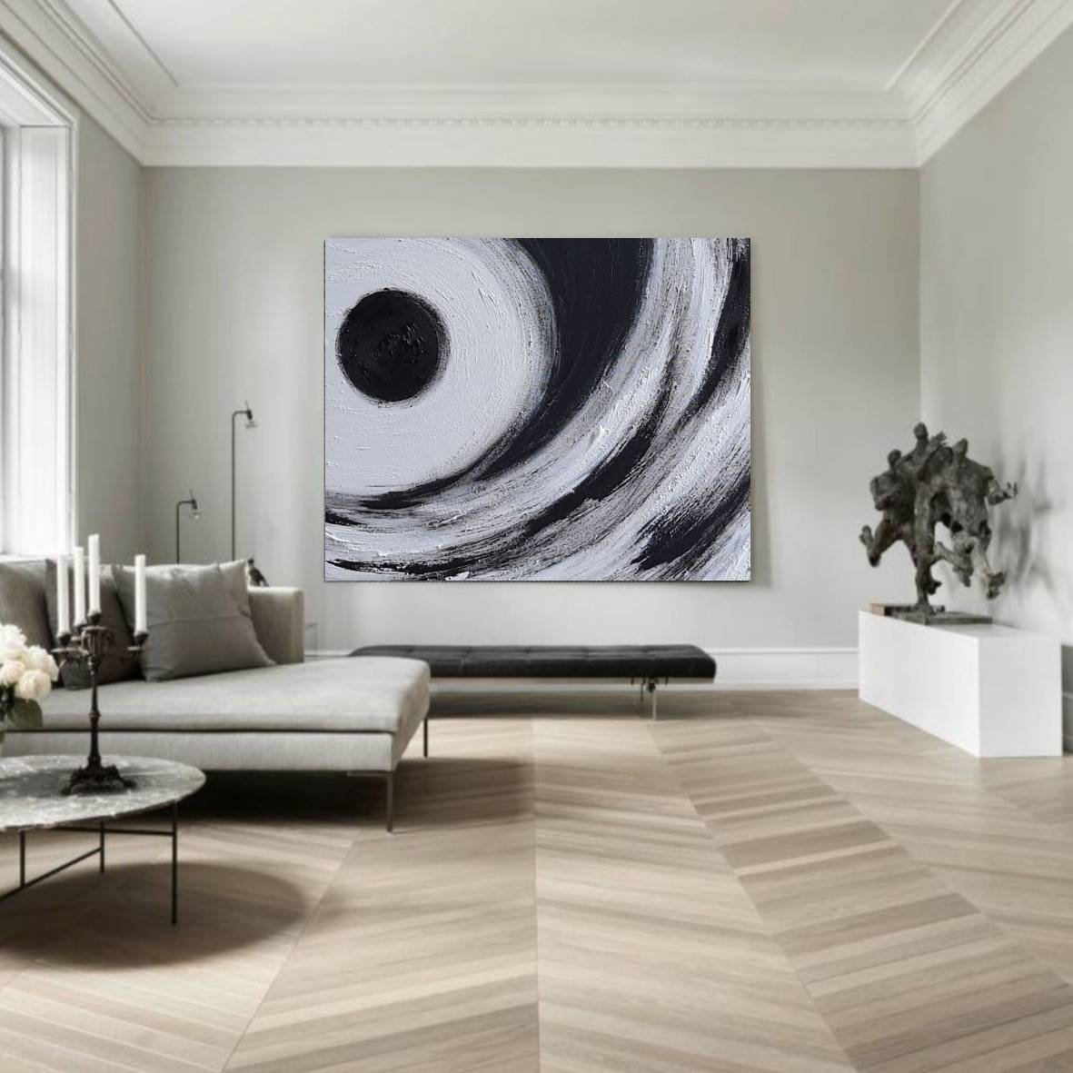 The dynamic contrast of black and white, combined with expressive circular movement, brings balance, depth, and sophistication to any modern interior.