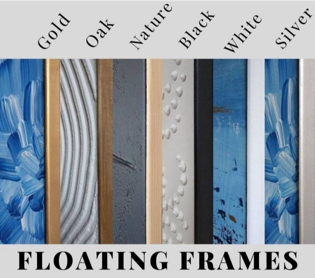 I provide wooden floating frames for stretched canvas painting as a GIFT. You can order colors that are suitable for your interior ( Black, White, Gold, Silver, Natural):