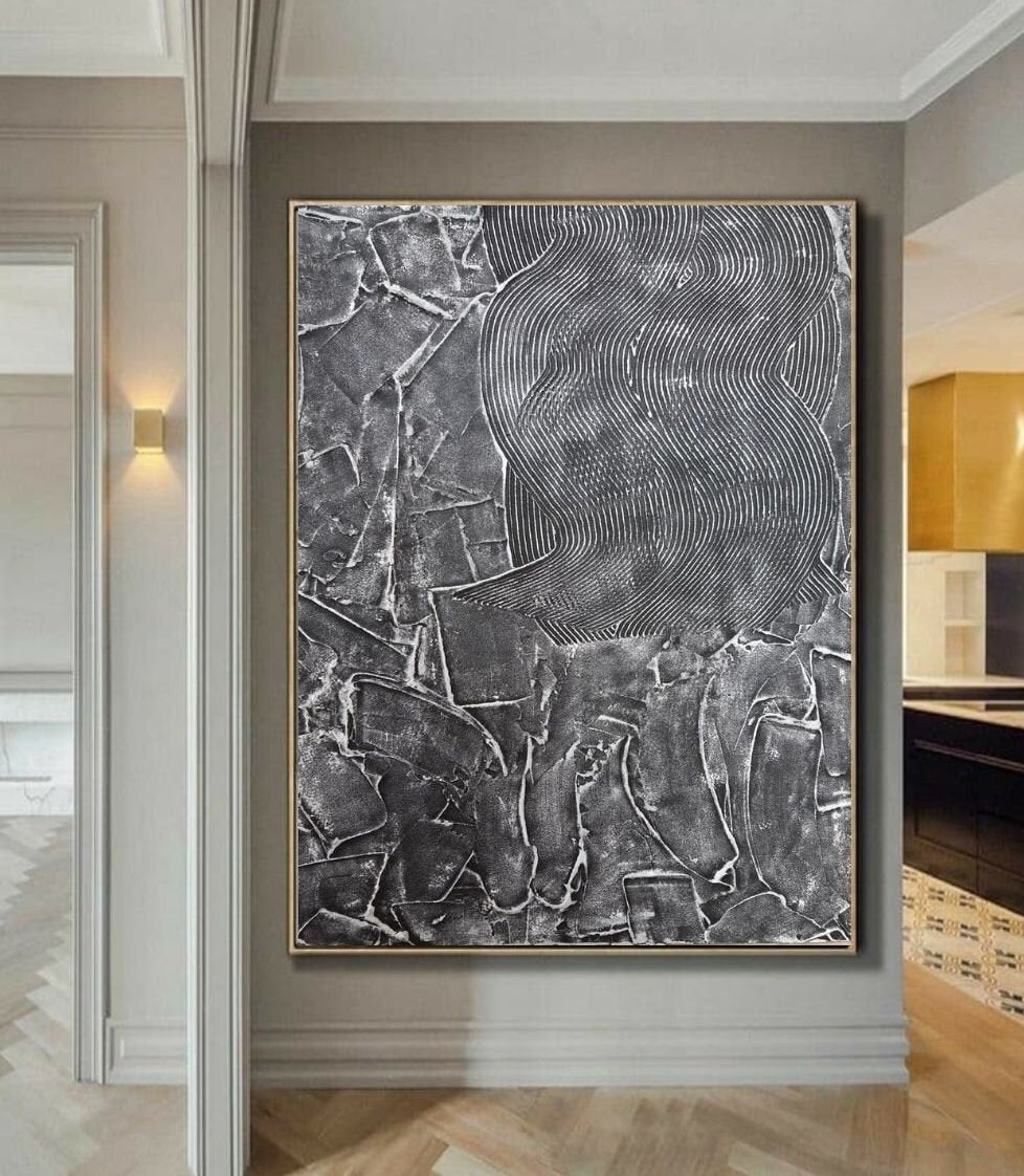 Extra Large Black & White Textured Wall Art Abstract Canvas Painting