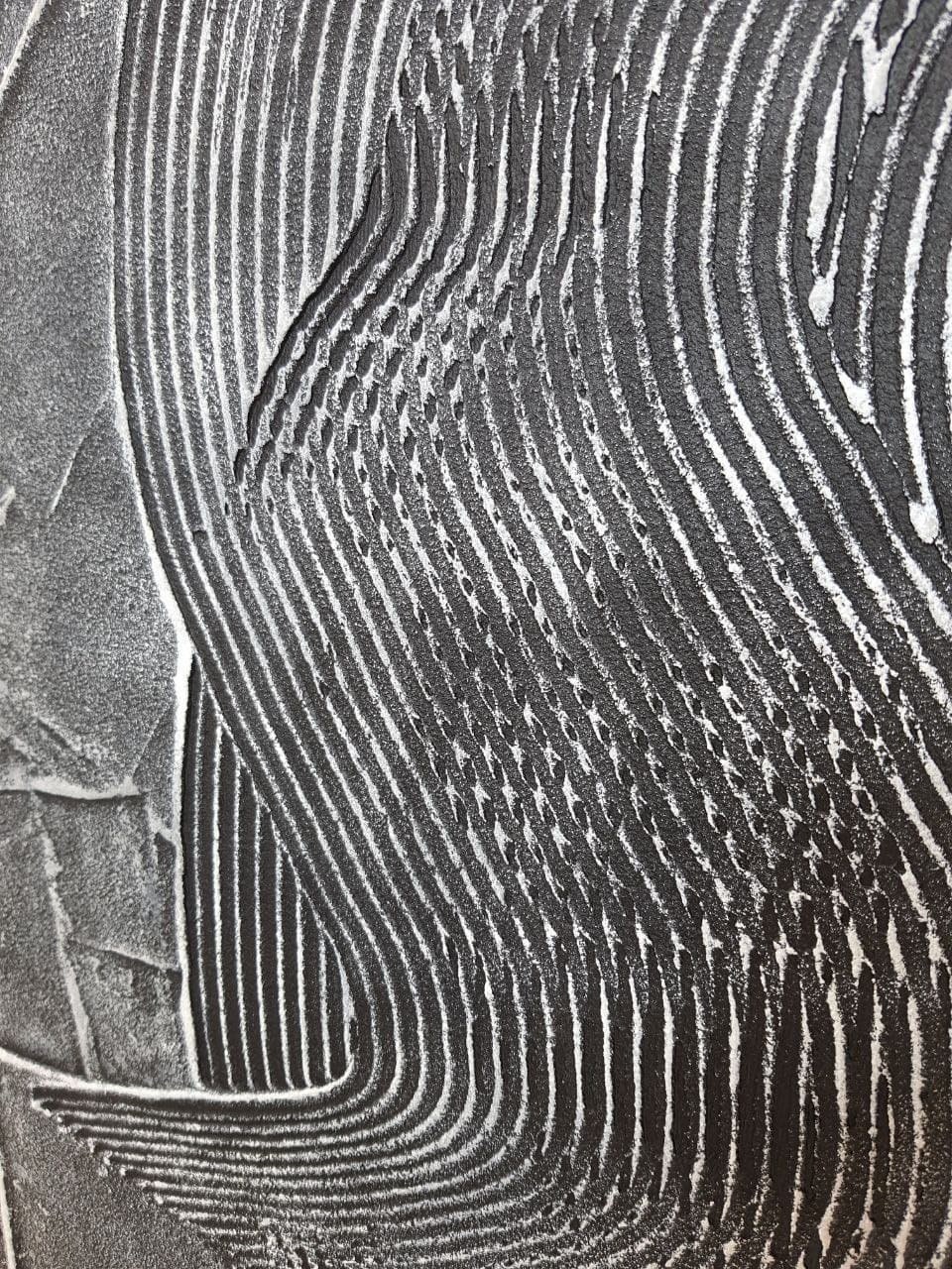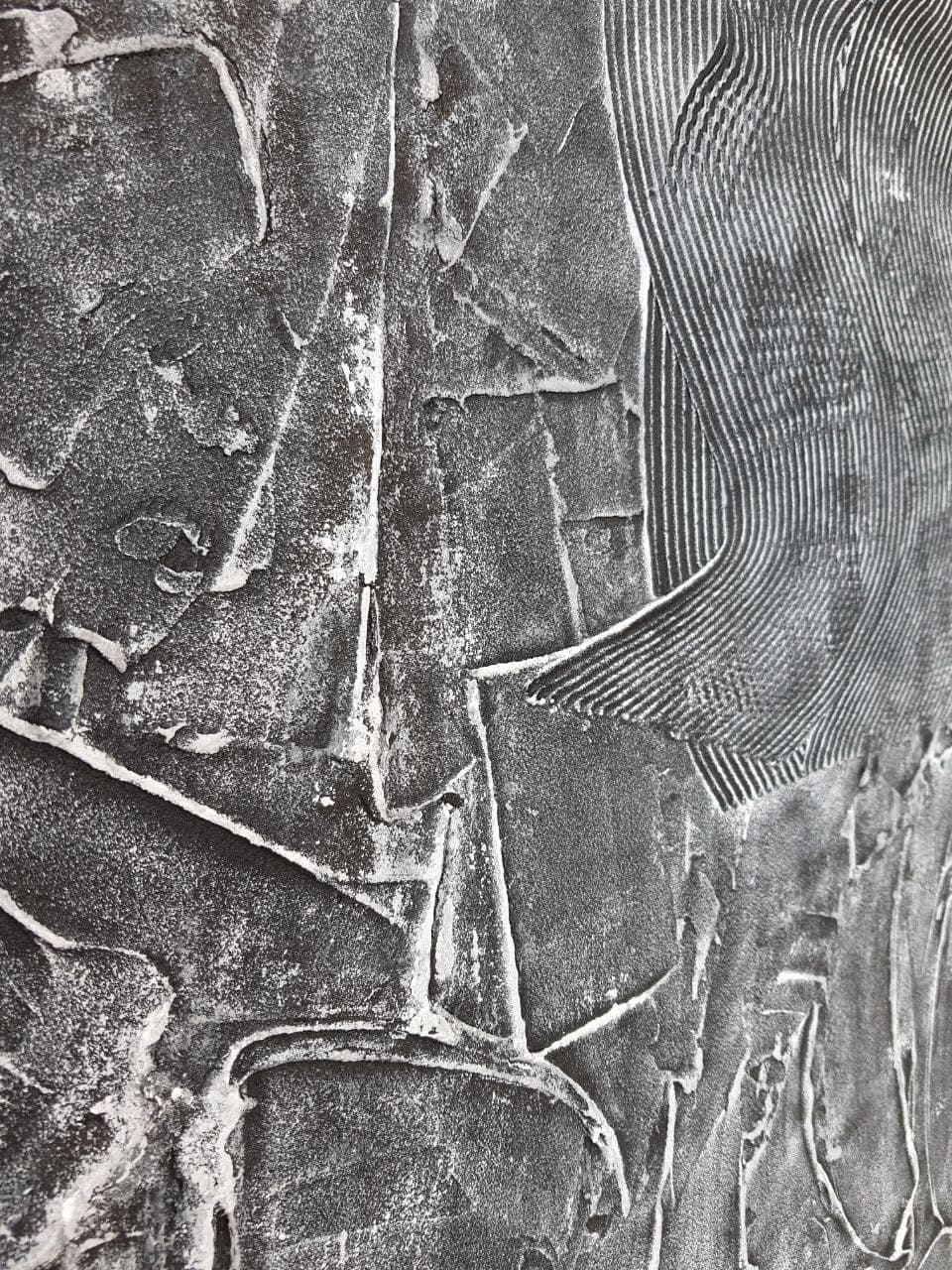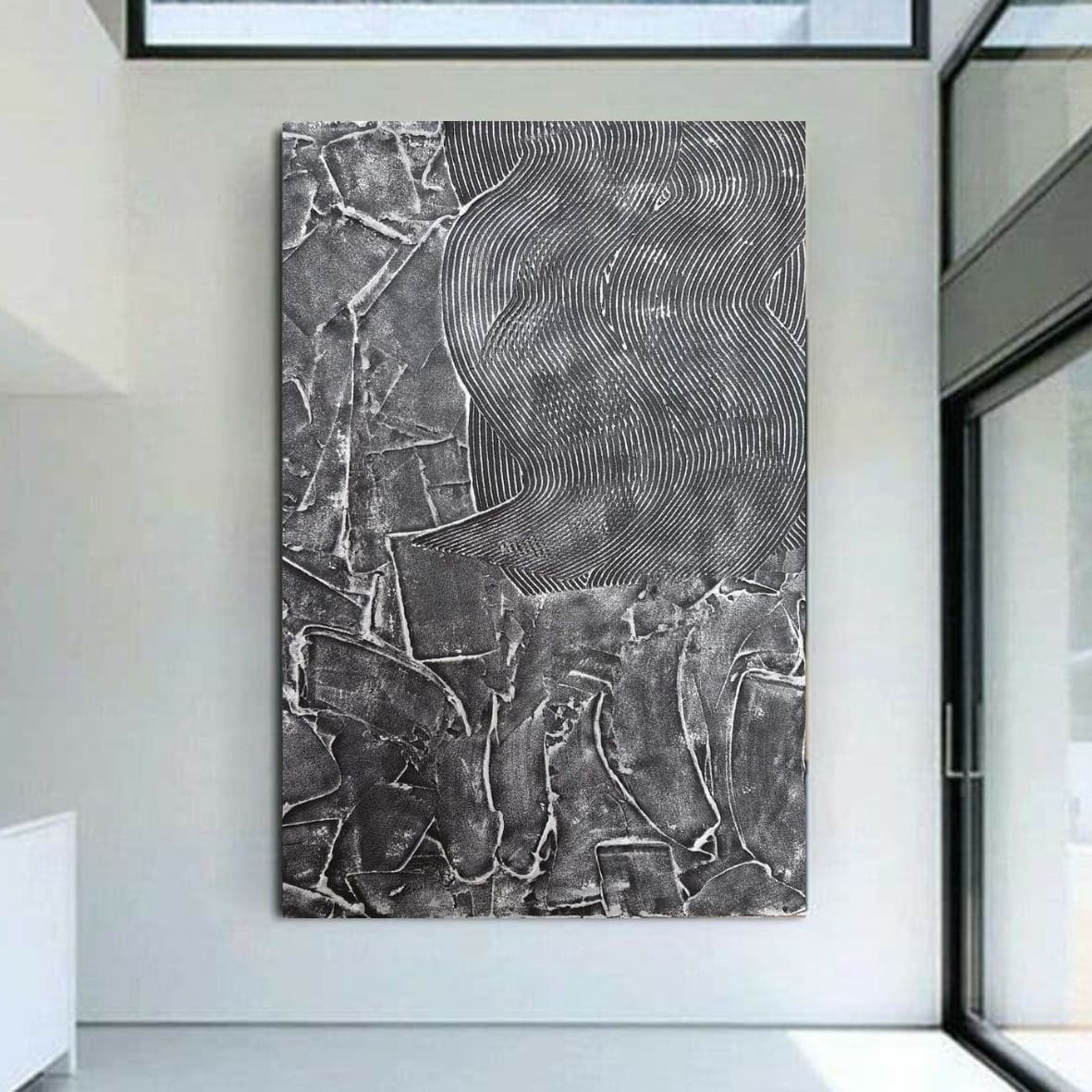 This large black and white abstract textured painting is a bold, modern statement artwork, created entirely by hand using textured techniques to achieve a rich 3D surface.