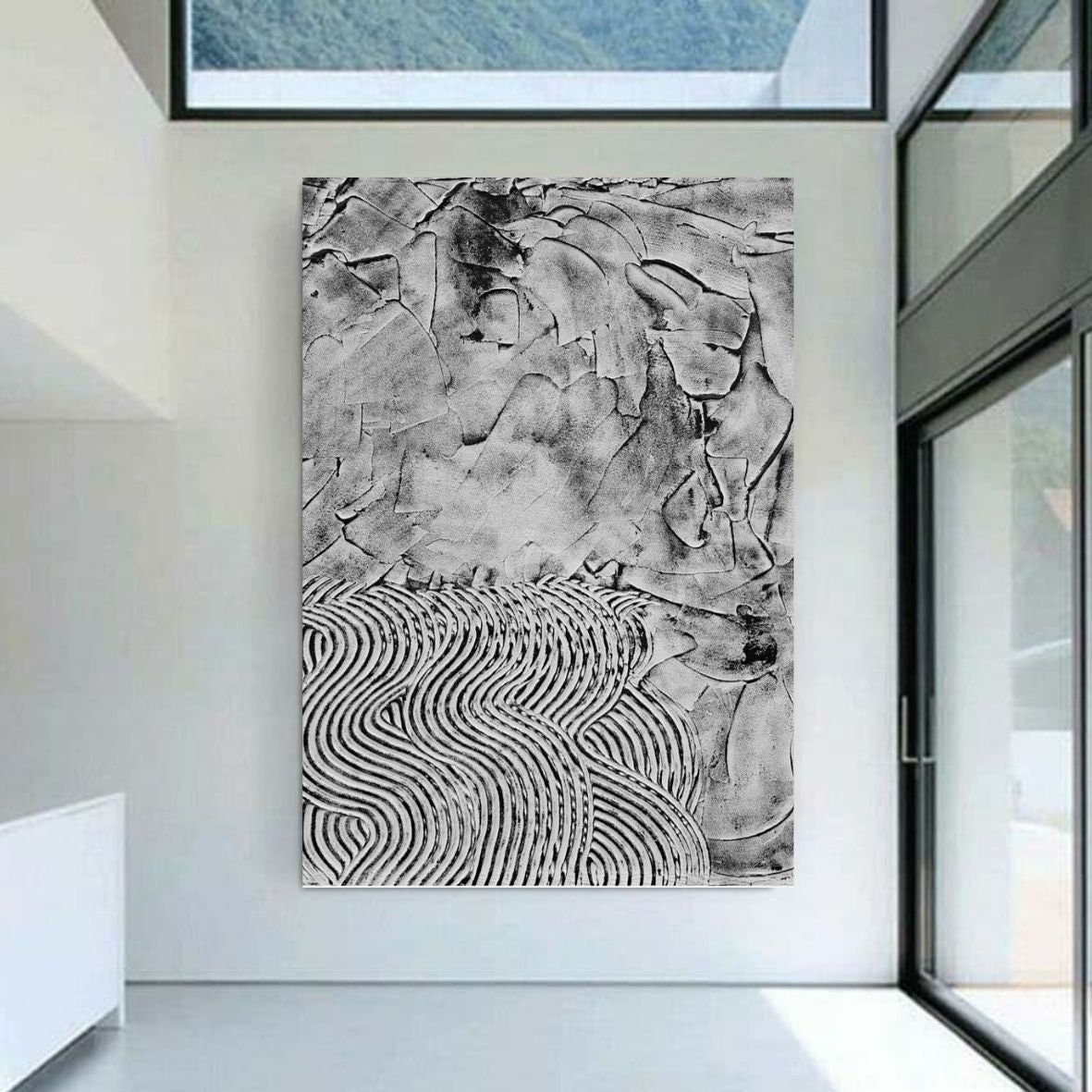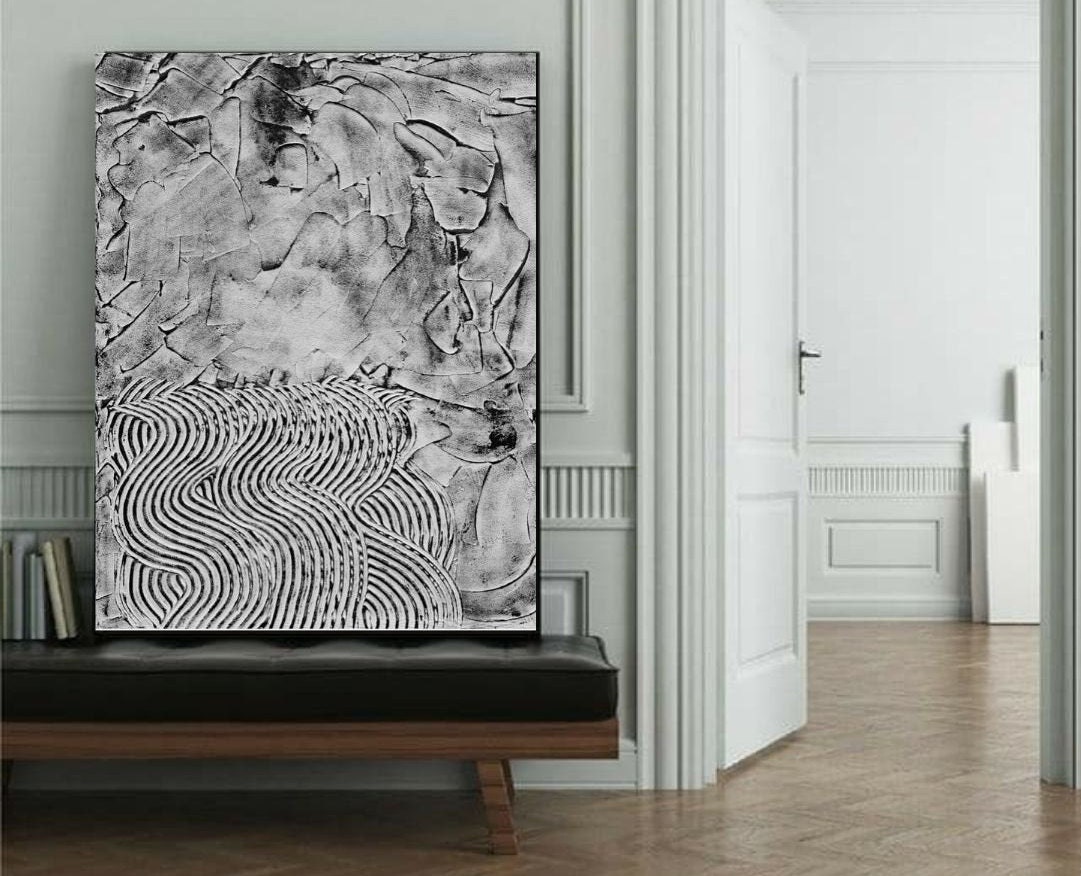Extra Large Black & White Textured Wall Art Modern Abstract Canvas Painting
