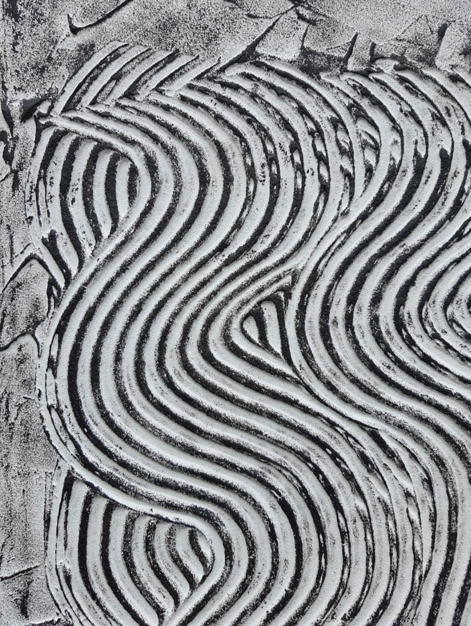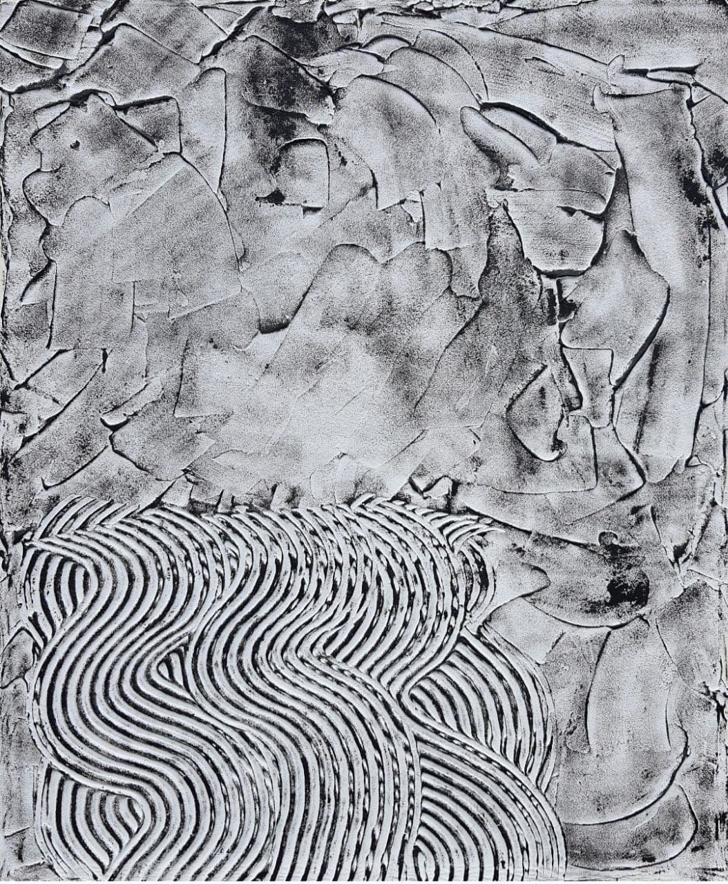 This large black and white abstract textured painting is a bold, modern statement artwork, created entirely by hand using textured techniques to achieve a rich 3D surface.