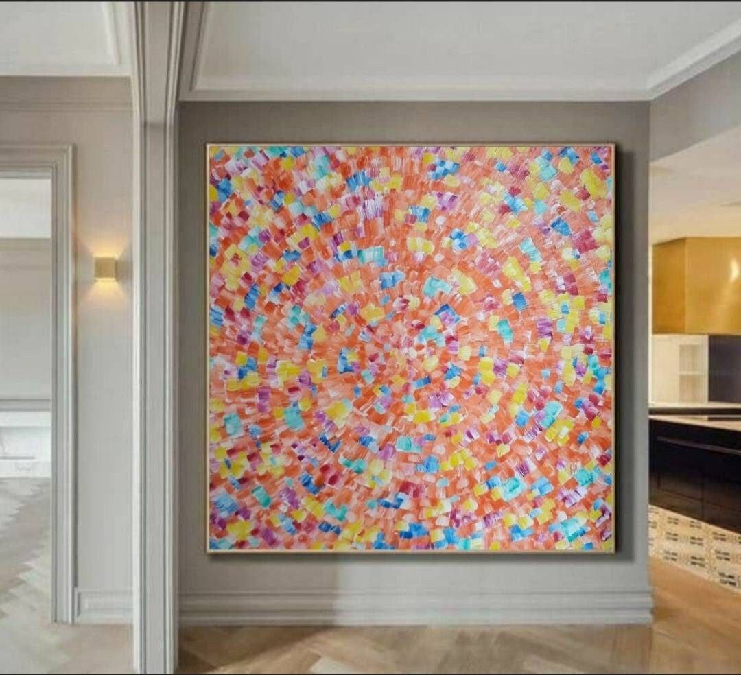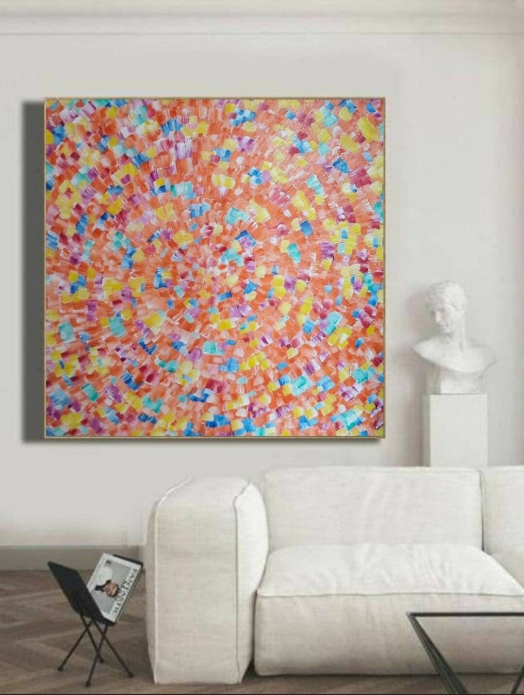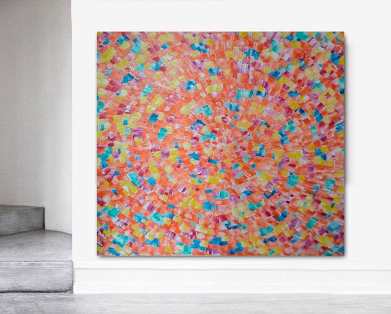 Extra Large Painting Colorful Abstract Painting Orange Modern Wall Art Canvas Bright Original Painting Rainbow Contemporary Mosaic Wall Art