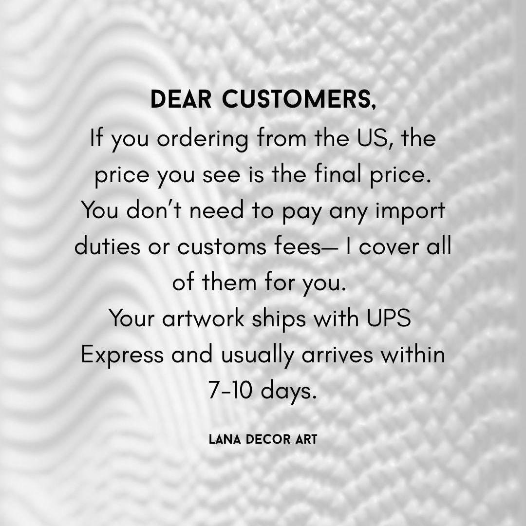 Each painting is handmade, so every piece is unique. You can request any size or color to match your interior design.