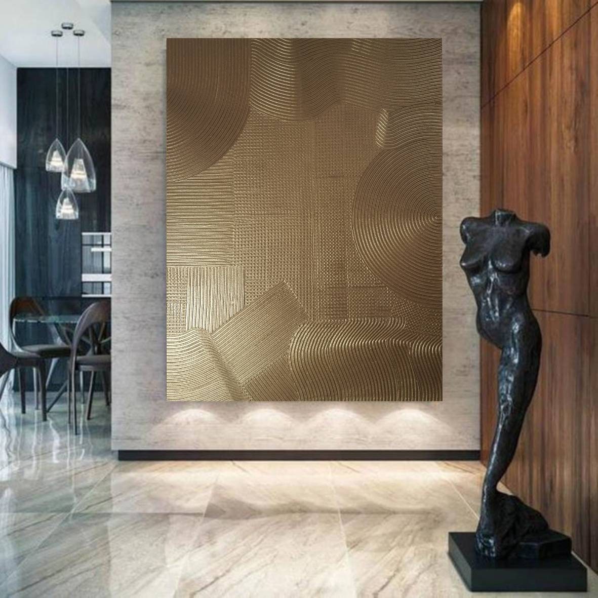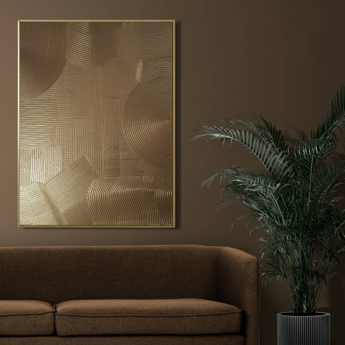 The painting’s warm metallic tones and minimal geometric texture make it a perfect fit for modern, luxury, or neutral interiors — ideal for your living room, bedroom, hallway, or office.