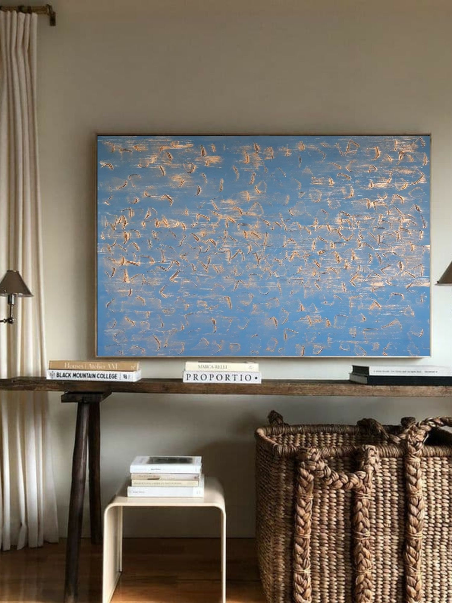 Large Painting Blue Grey Gold Accent Texture Abstract Living Room Wall Art Oversize Modern Original Canvas Contemporary Art for Home