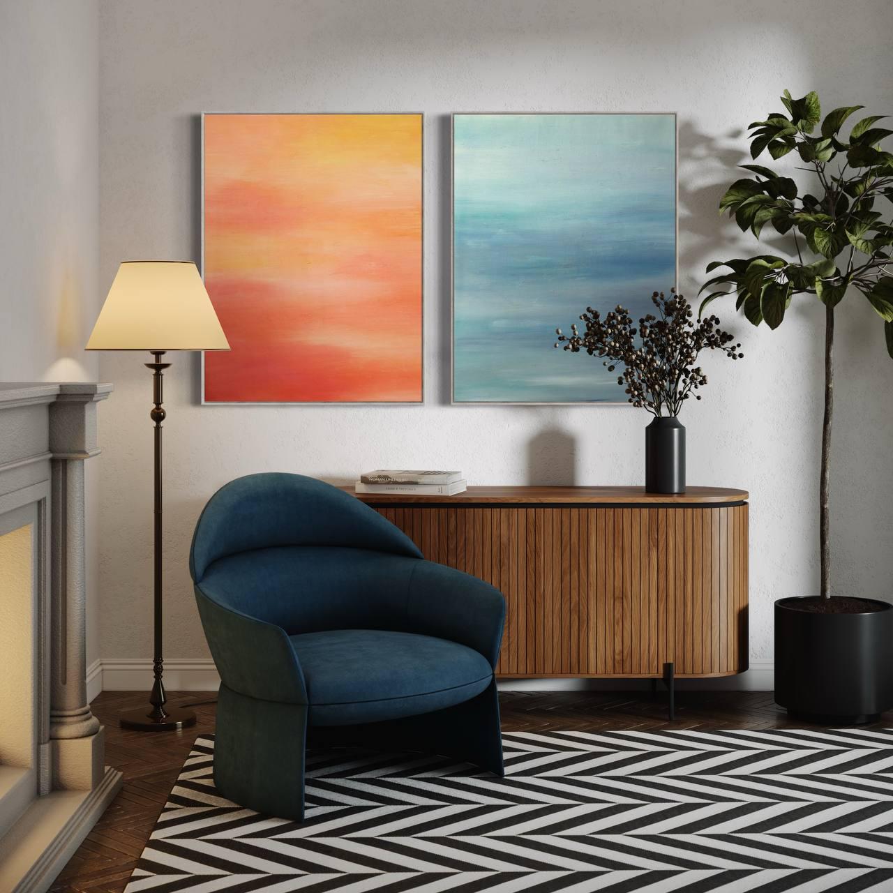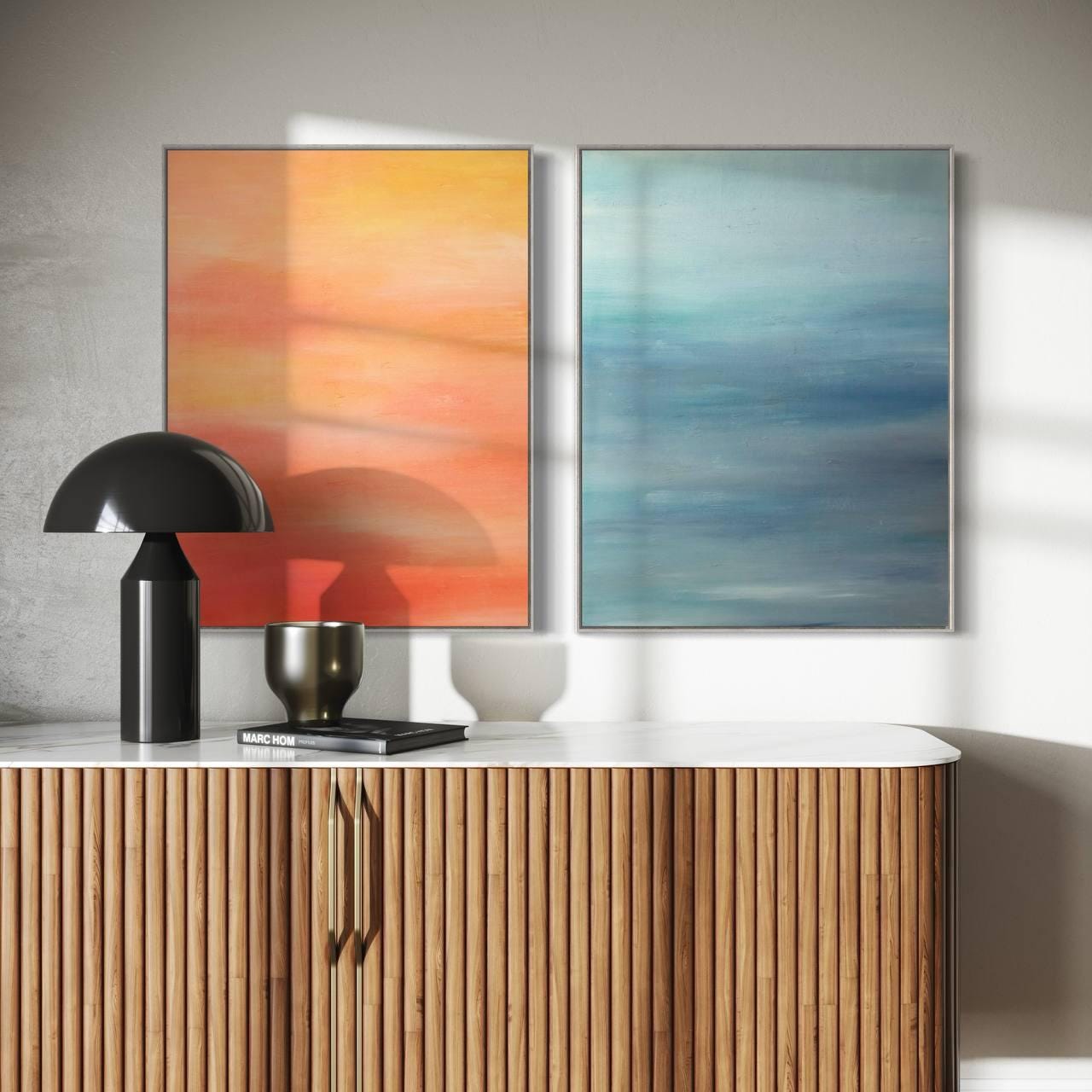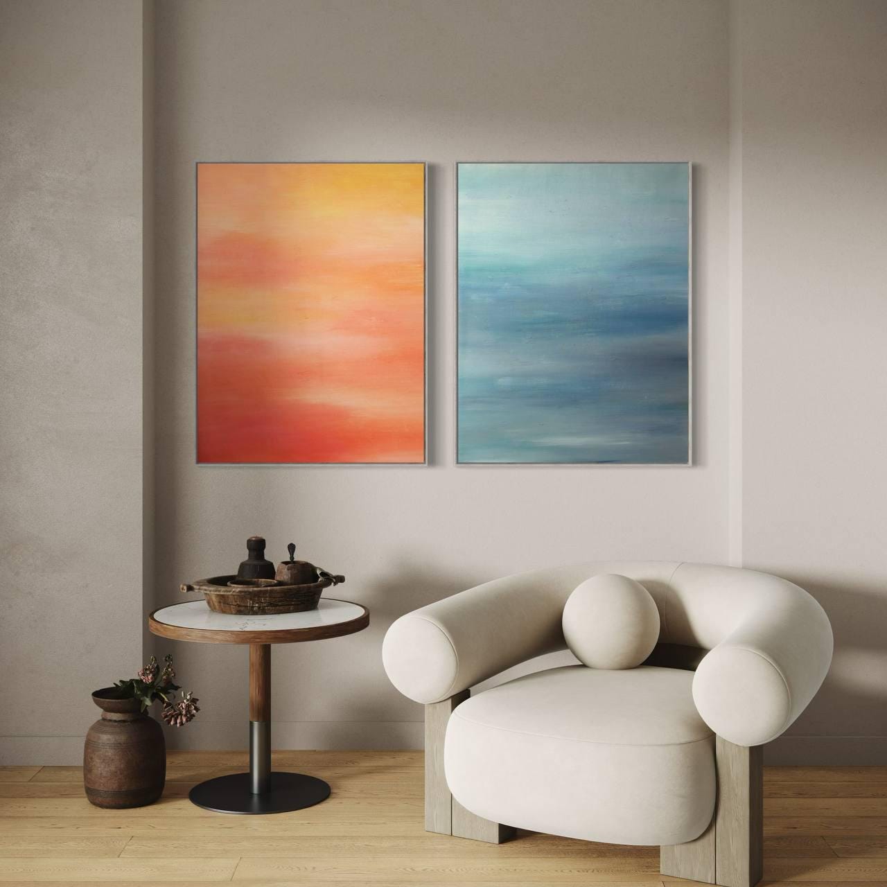 Oversize Abstract Seascape Painting Set: Modern Sunset Canvas Art