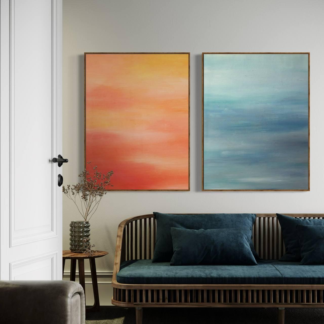 Extra Large Painting Oversize Set of 2 Abstract Wall Art Living Room Modern Landscape Seascape Canvas Original Contemporary Sunset pictures
