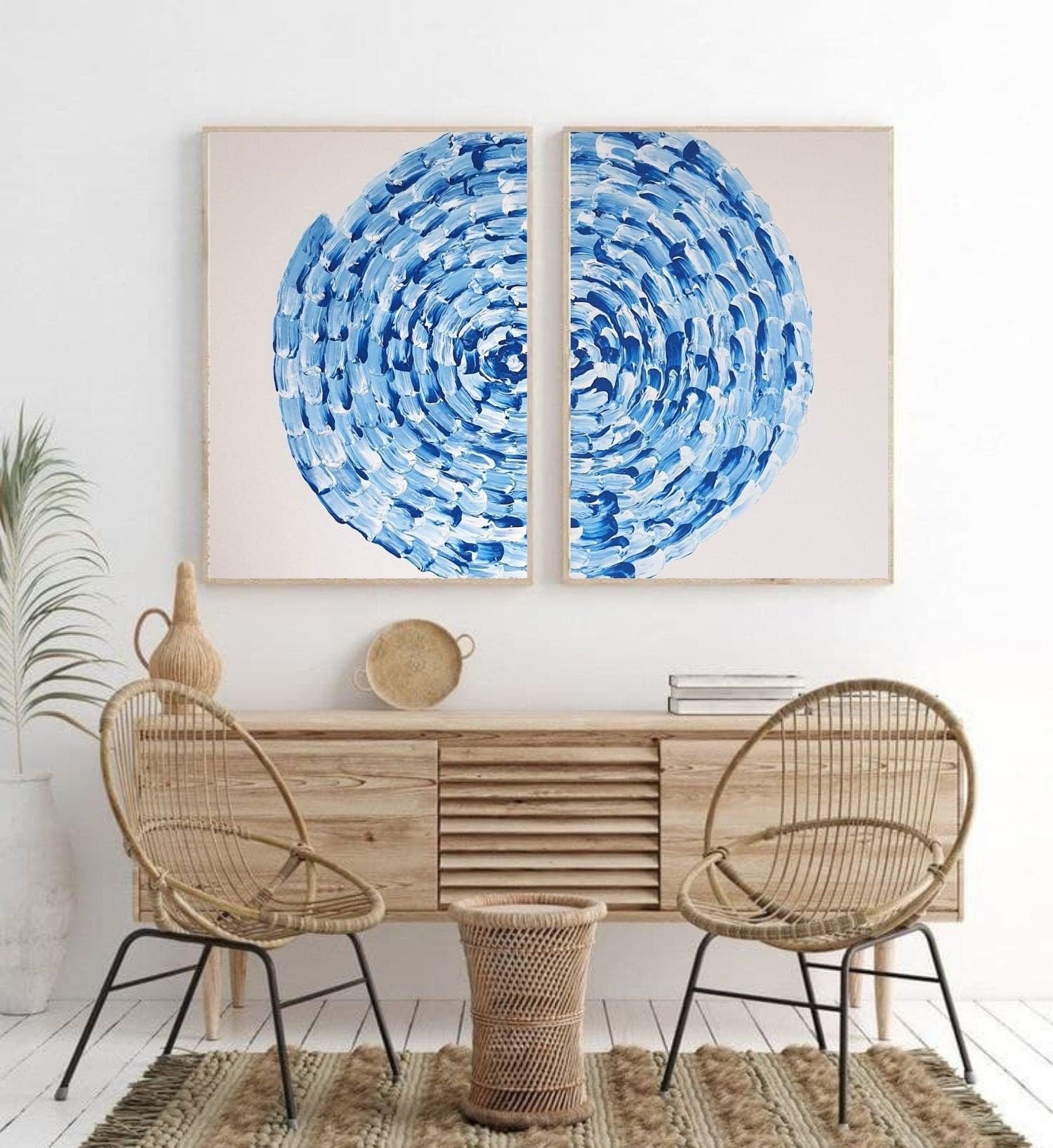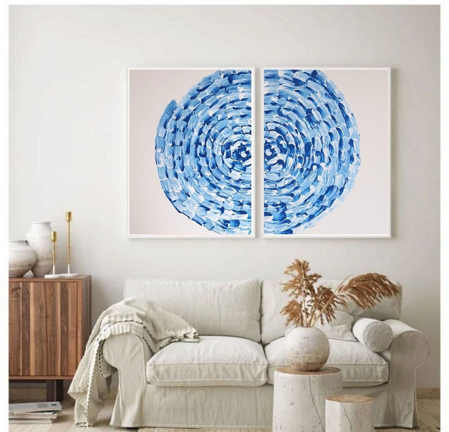Oversize Abstract Painting Set: Blue & White Spiral Wall Art
