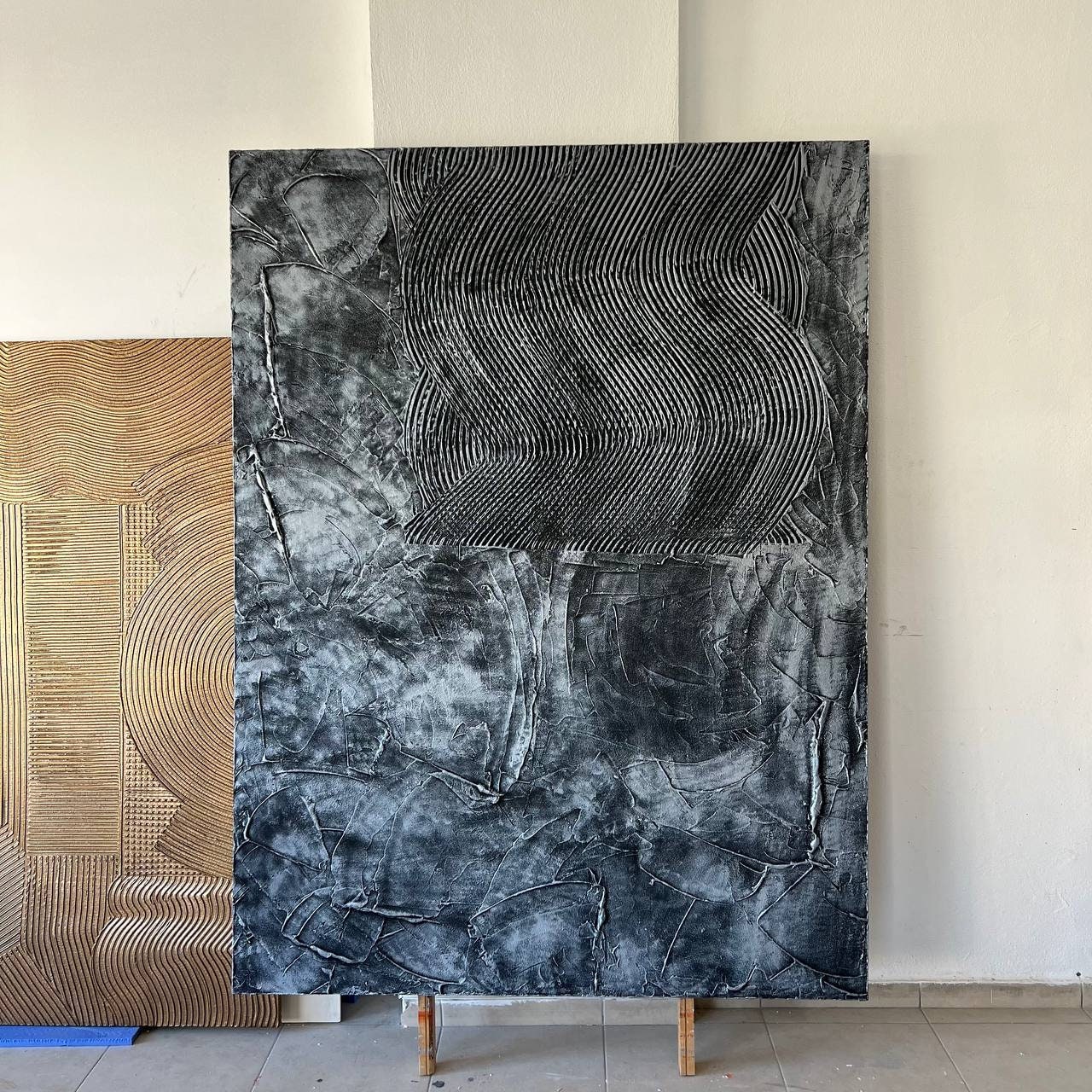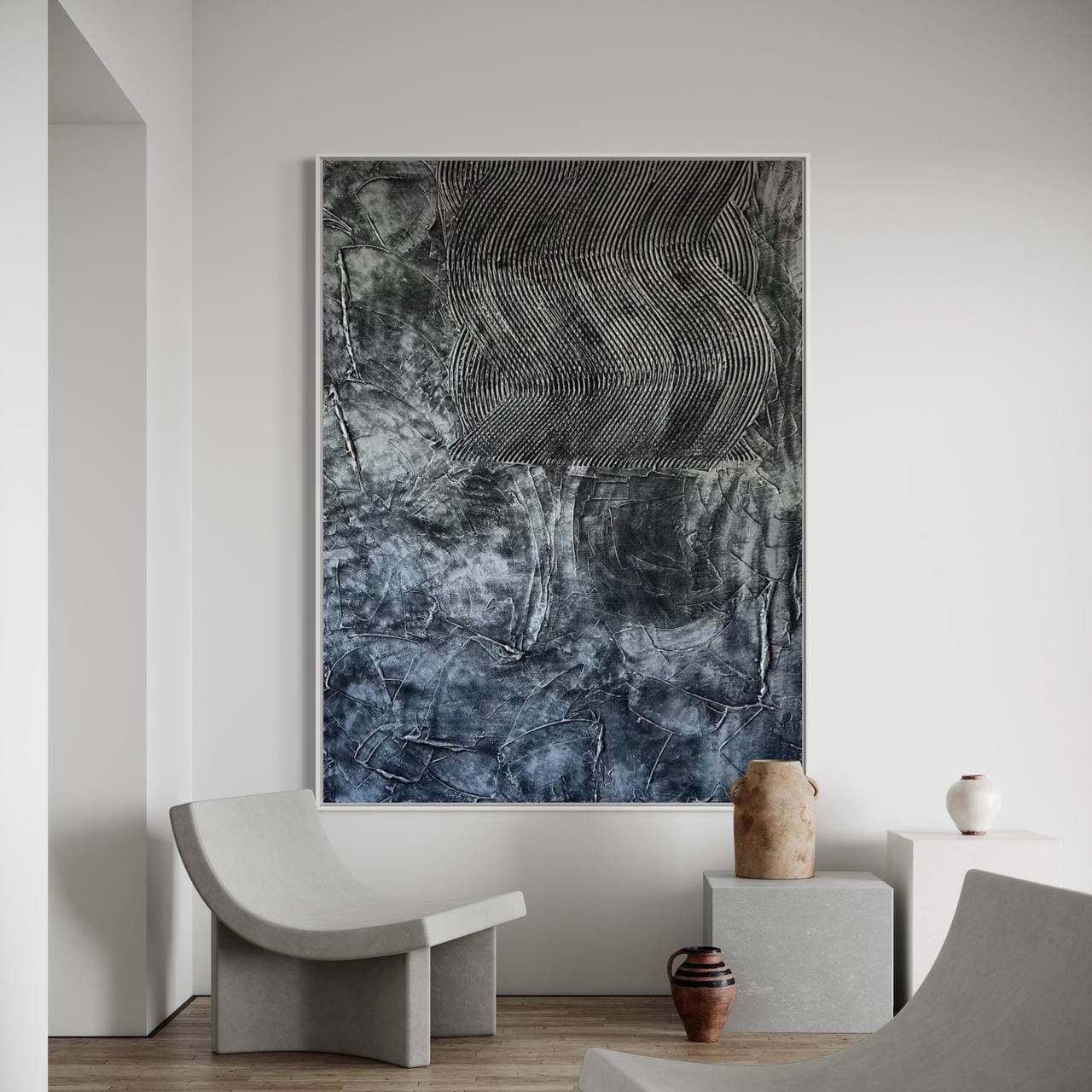 Modern Black & Silver Textured Wall Art – Bold Contemporary Statement Piece