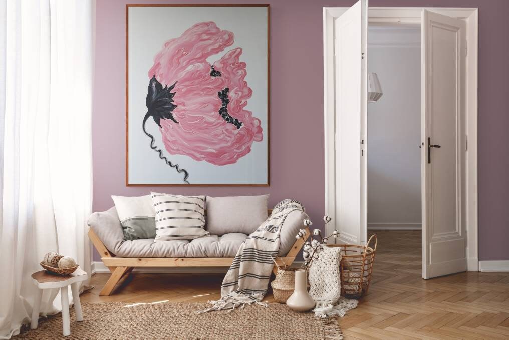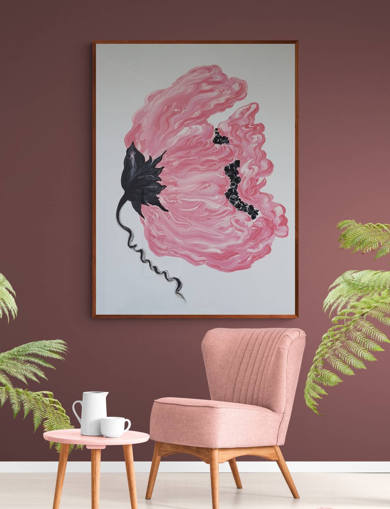 Oversized Pale Pink Flower Painting: Abstract Floral Canvas Wall Art