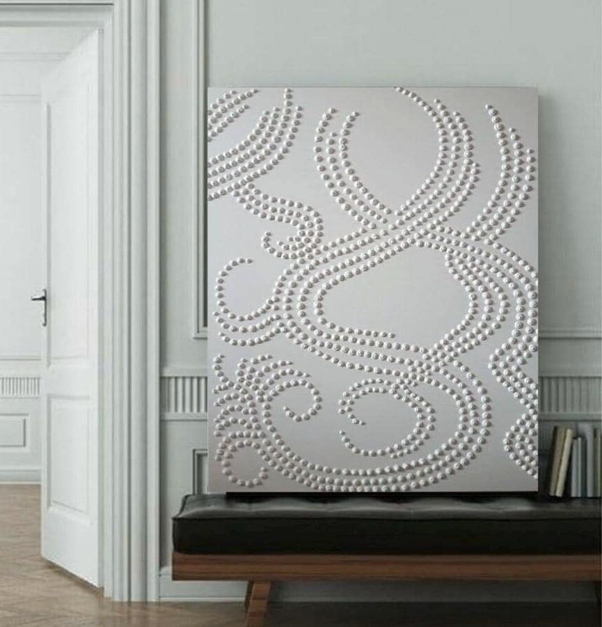 Large White Textured Wall Art Oversized Abstract Painting 3d Dot Plaster Original Canvas Neutral Home Decor
