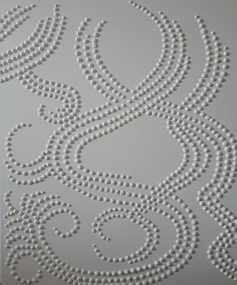 - Hundreds of raised dots forming flowing abstract lines