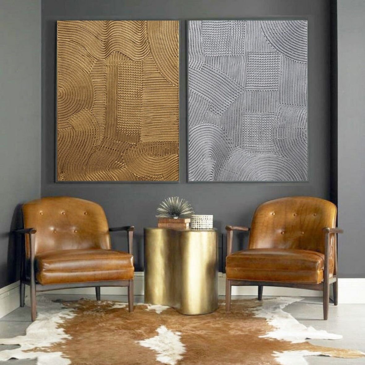 Textured Gold Silver Painting Set: 3D Abstract Canvas Art