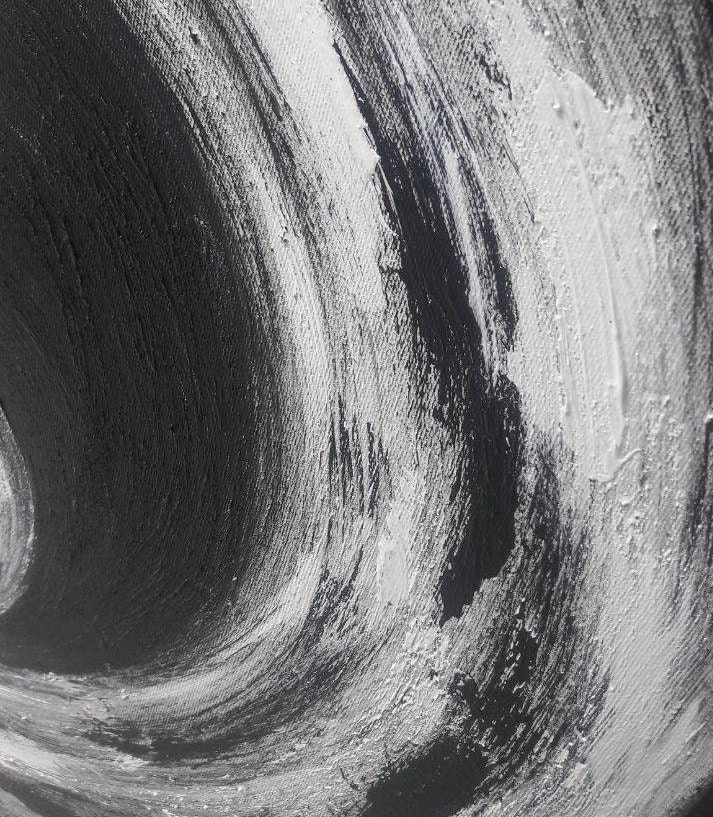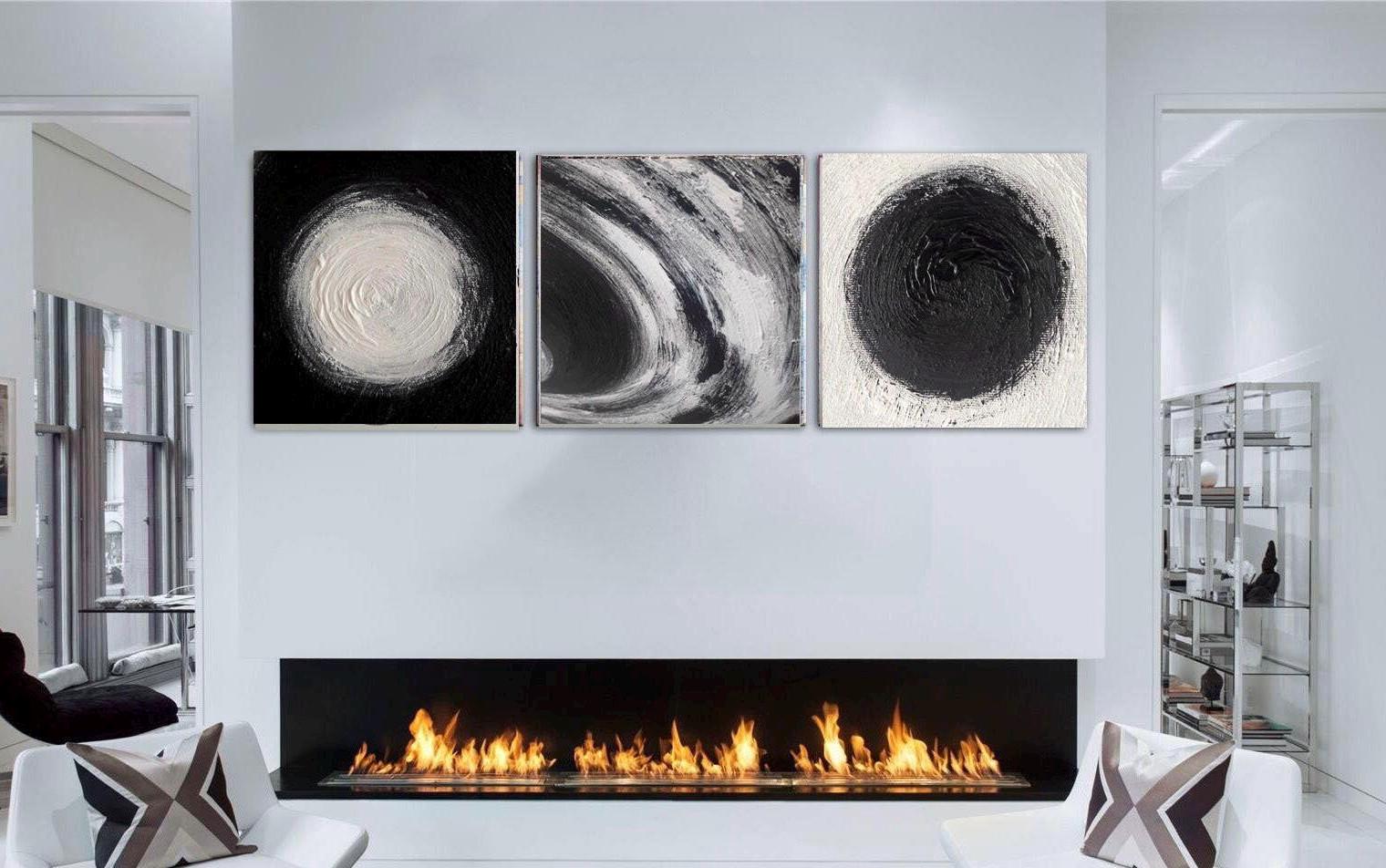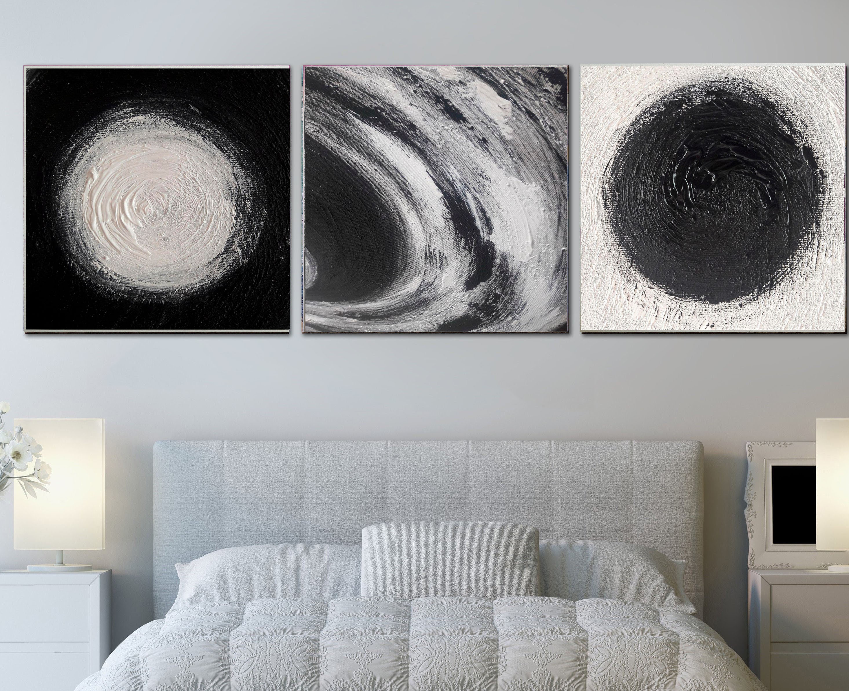 Large Black and White Abstract Painting Set: Modern Circle Canvas Art