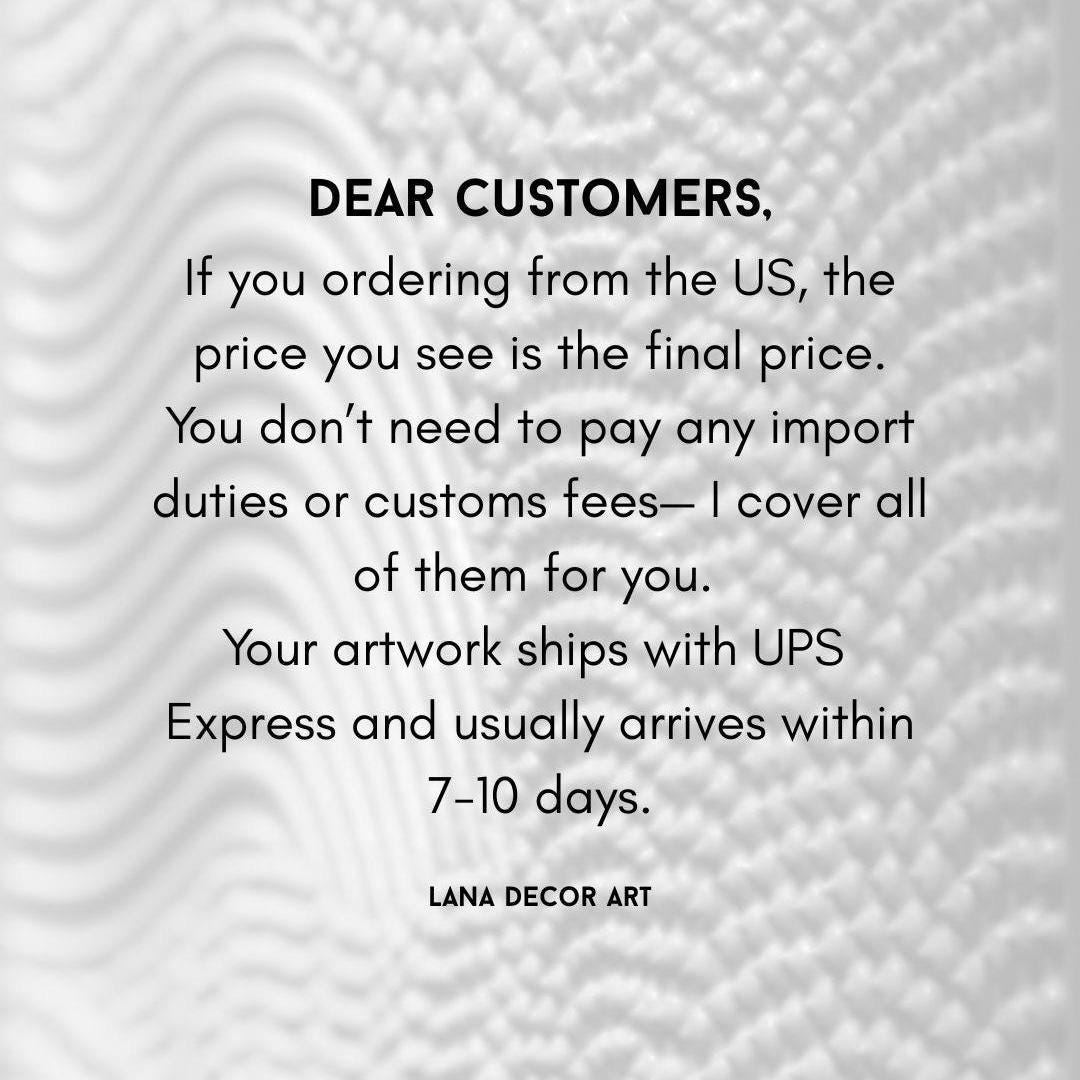 Each painting is handmade, so every piece is unique. You can request any size or color to match your interior design.