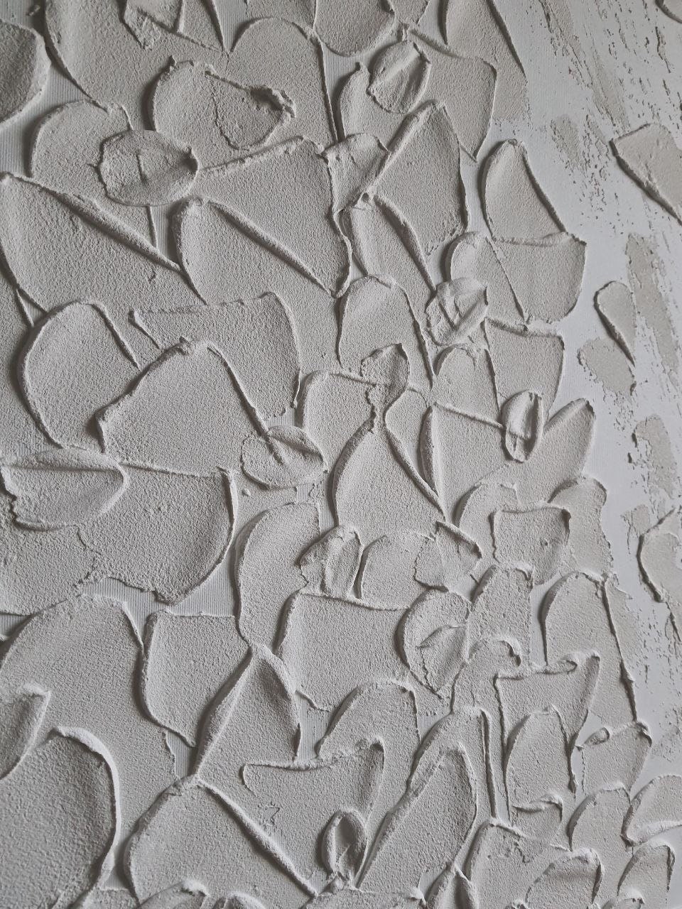 Large White Textured Painting, Abstract 3D Plaster Wall Art